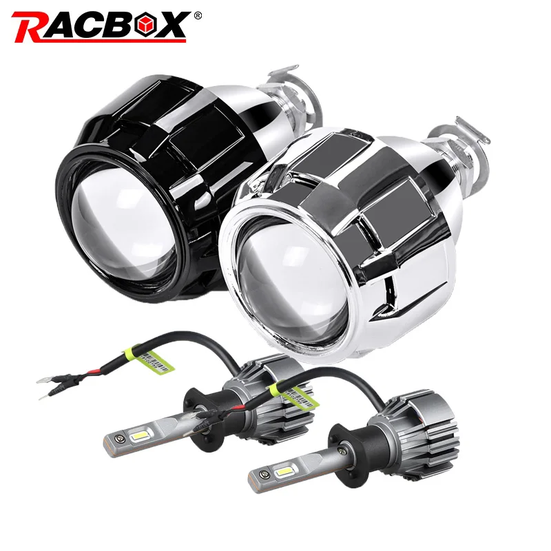 Биксеноновые Мини-объективы для проектора RACBOX, 2 шт., 2,5 дюйма, серебристо-Черный кожух с H1 LED модернизация лампы H4 H7, автомобильная фара в сборе