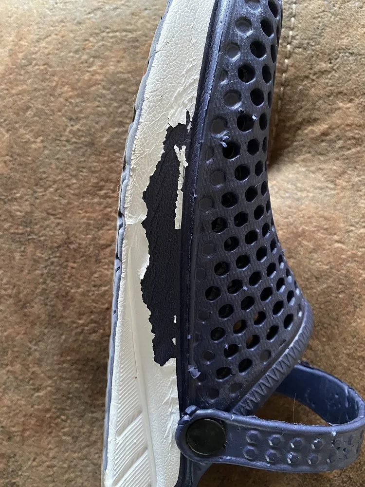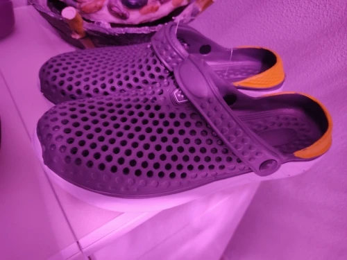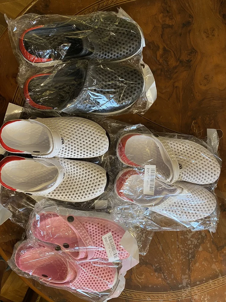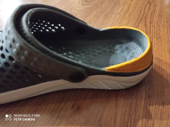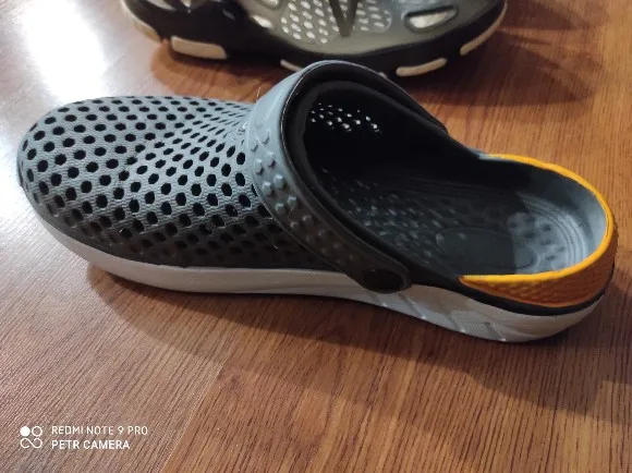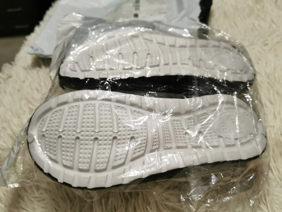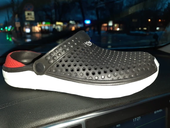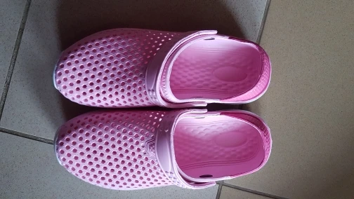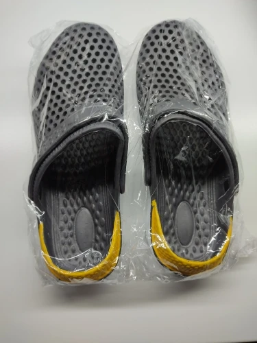 Сначала о заказе, доставка за 2 недели от момента оплаты до получения в постомате в 150 метрах от дома. Теперь о тапках: они маломерят, и очень сильно. Пришедший 43 размер имеет небольшой запас на ногу нашего 40 размера. Тапки цельнолитые из серой массы, белое и жёлтое это краска. Запах фенола при вынимании из пакета просто сшибает, положили в туалет, выветриваться. И не смотря на это, за такие деньги - маст хэв. Рекомендую товар и продавца, good seller, I recommend!