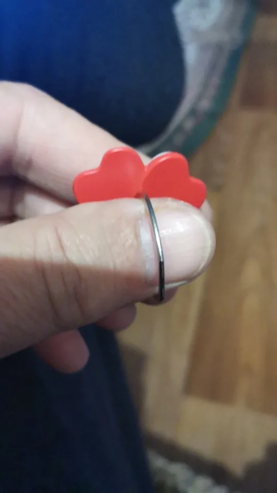На фото кольца выглядят намного толще. Пришли ужасного качества тонкие куски пластмассы. Само кольцо слишком тонкое и неудобное. Из красивого только цвет