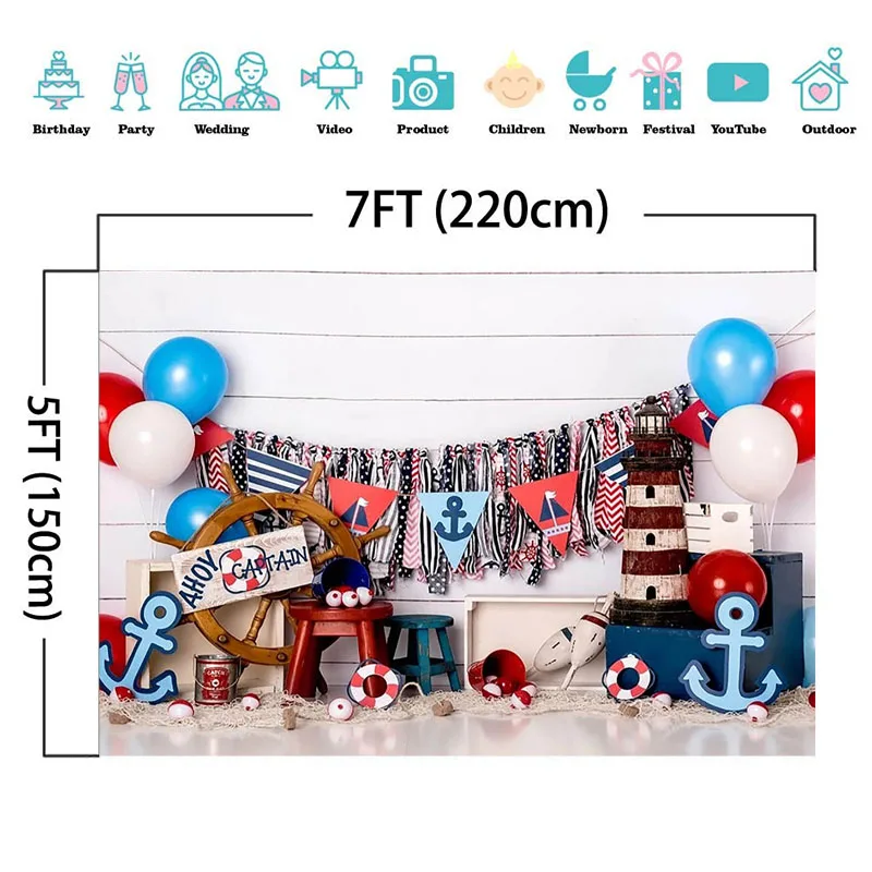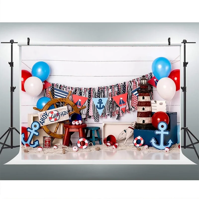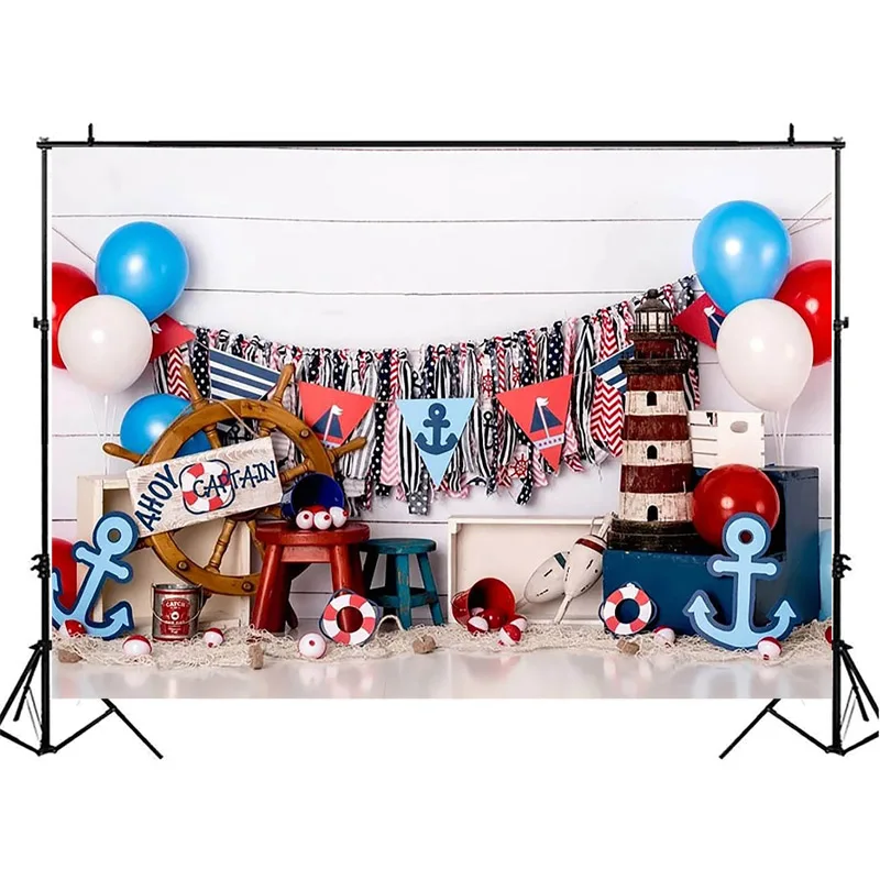Фон для фотосъемки новорожденных мальчиков, тематический парусный корабль, пиратские Приключения воздушные шары