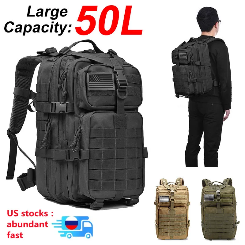 Тактический рюкзак большой вместимости 50 л, водонепроницаемый рюкз...