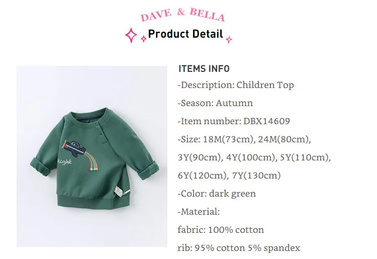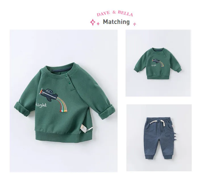 DBX14609 dave bellaОсенняя красивая футболка с рисунком для маленьких мальчиков; Детские топы для мальчиков; Модные детские футболки