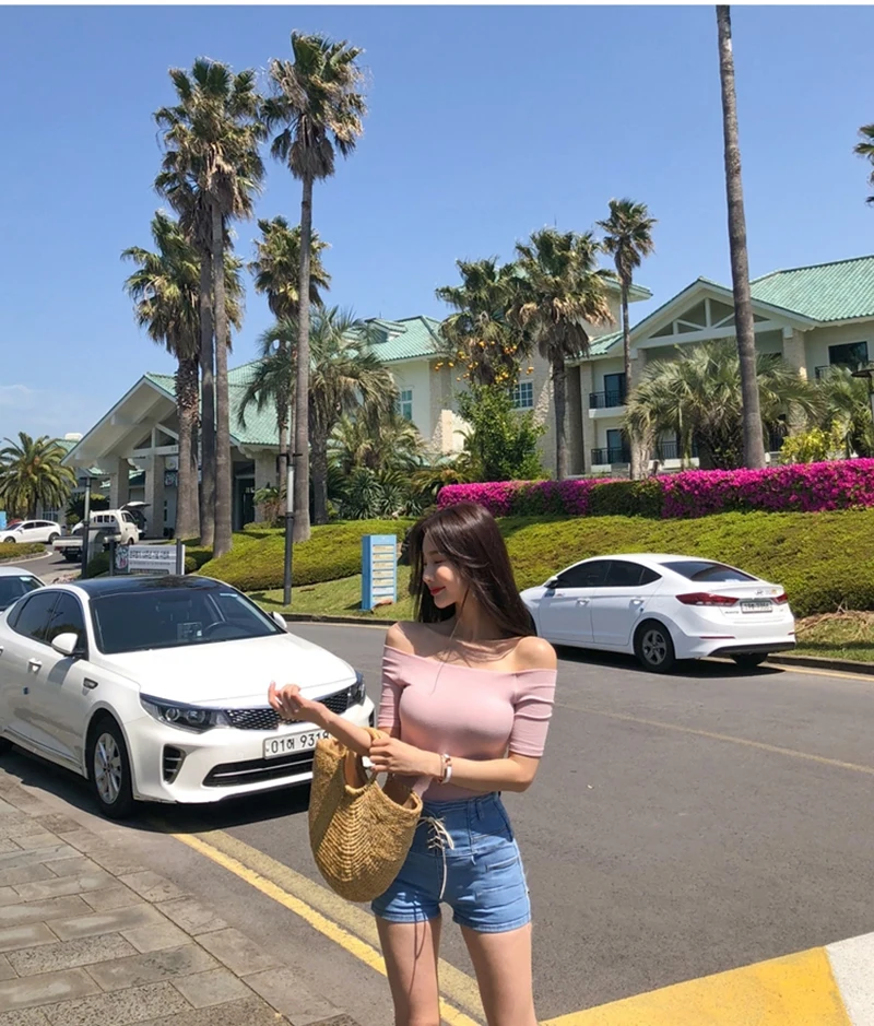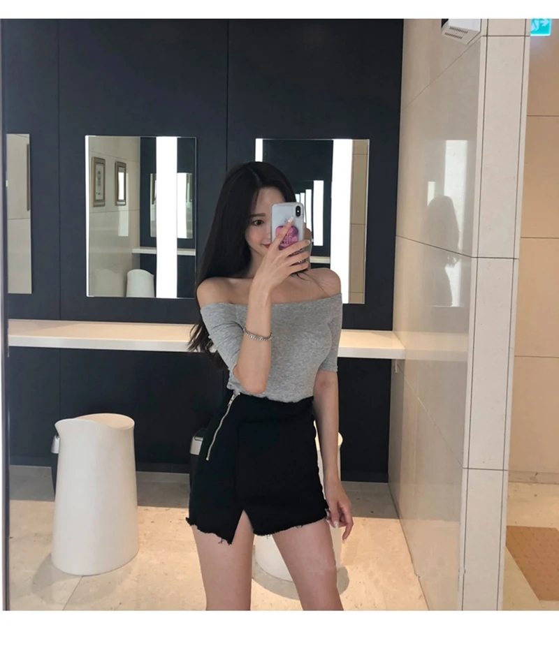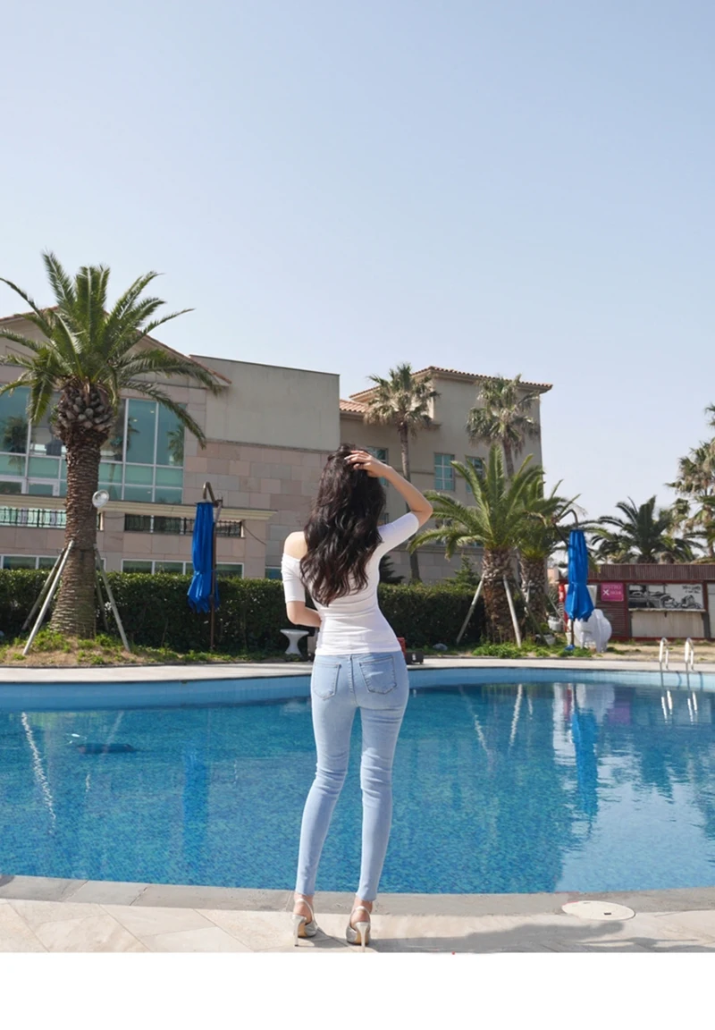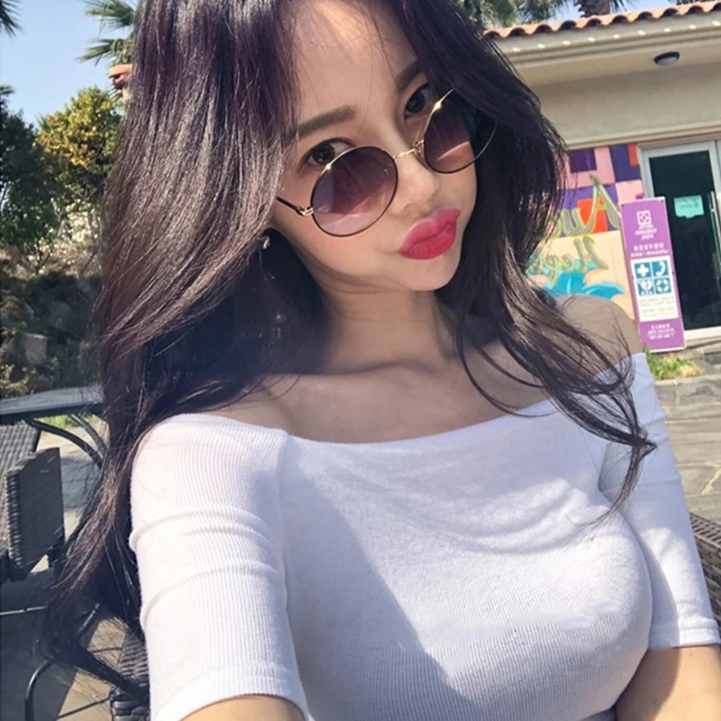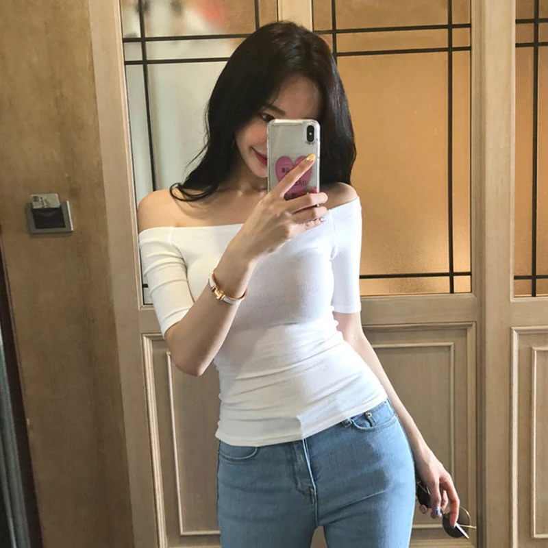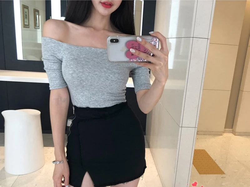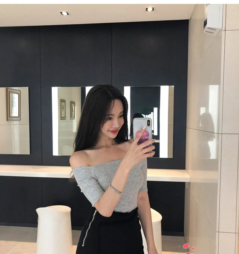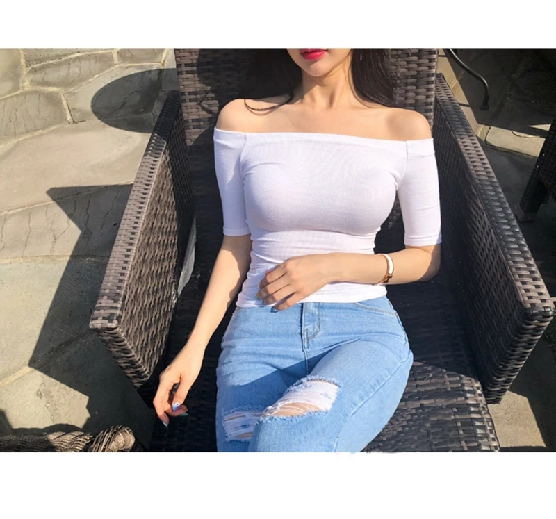 Новый тонкий летний топ, Сексуальная футболка, Женская эластичная футболка, Женский в Корейском стиле, одежда, тонкая футболка, женские повседневные топы с короткими рукавами