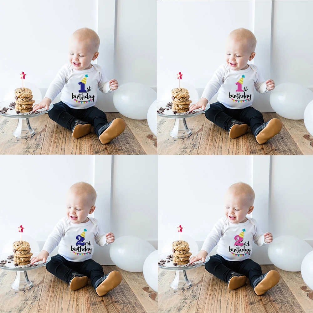 Детские комбинезоны с длинными рукавами для новорожденных, одежда с надписью «My First Birthday» для мальчиков и девочек, детская вечеринка для мальчика день рождение, одежда для детей 0-24 месяцев