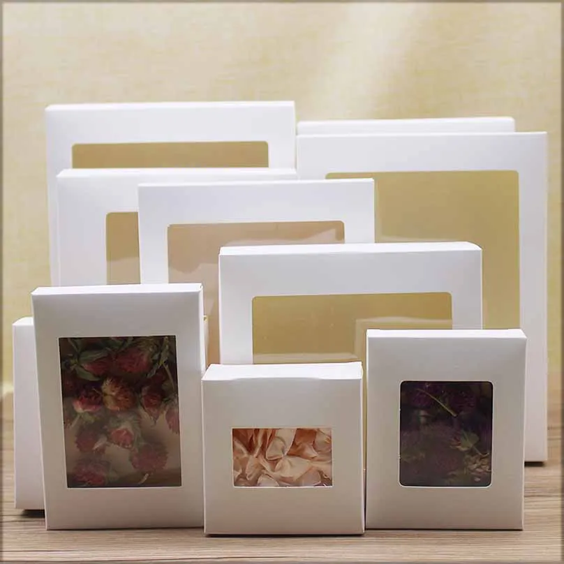 20 шт DIY бумажная коробка с окном белый/черный/крафт-бумага подарочная коробка торт упаковка для свадьбы дома вечерние упаковка для кексов коробкаМатериал подарочной упаковки