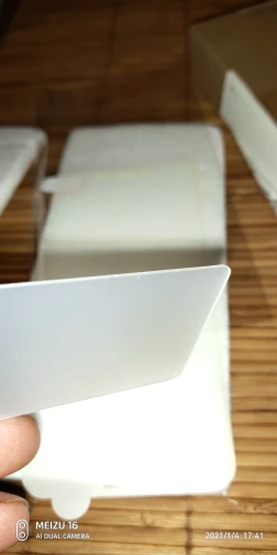 Пришло с быстрой поставкой до Москвы за 2 недели. Упаковка состоит из пакета, двух пластин из пенопласта, самих плёнок, салфеток и инструкции. Жаль нет стикеров для удаления пылинок. Наклейка труда не составила. Понравилась идея со снятием середины пленки, которая позволила все отцентровать. На фото результата видны мелкие пузырьки, но они должны исчезнуть через некоторое время. Тактильно Алека конечно хуже стёкол, но из-за трещинки на экране стёкла мне нет смысла клеить, так как они отклеиваются через неделю. В общем покупать можно, продукт годный.