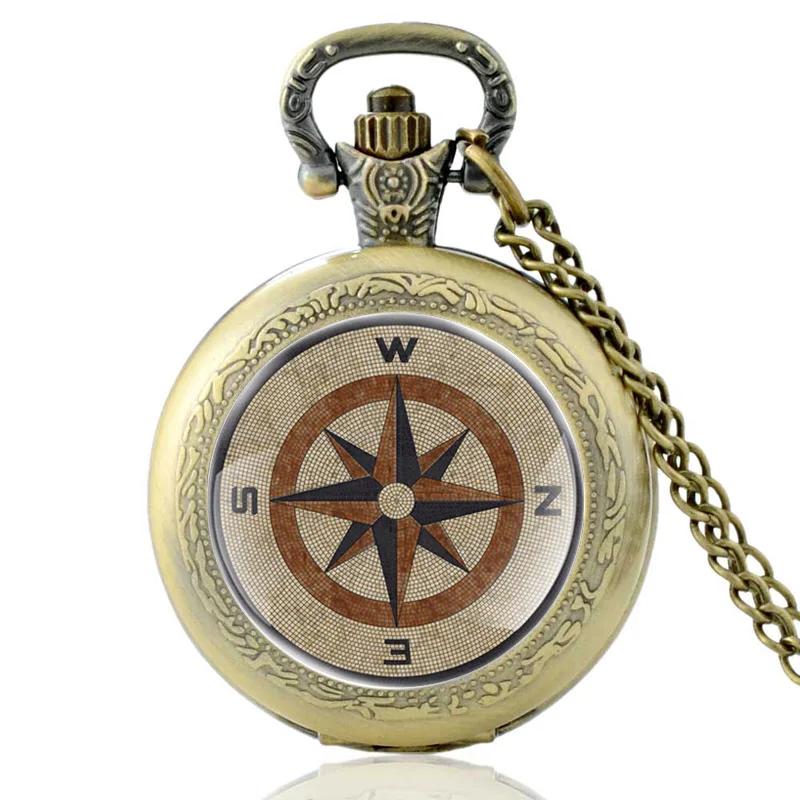 Винтажные в форме компаса дизайнерские кварцевые карманные часы для мужчин и женщин, бронзовый цвет, Очаровательное ожерелье с подвеской, часы, лучшие подарки