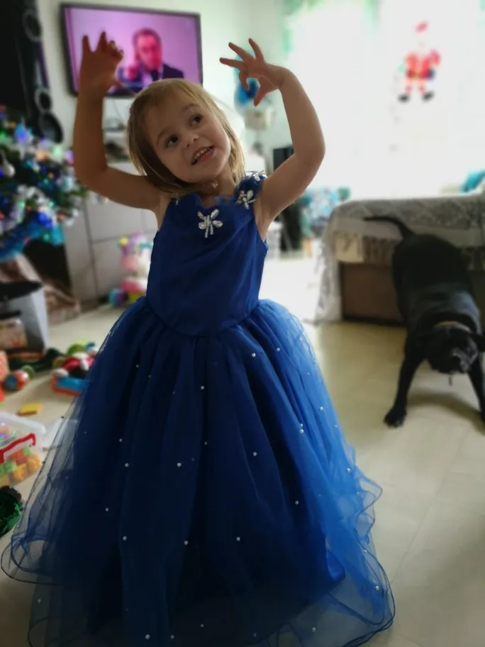 Очень красивое и качественное платье. Хорошая ткань. Дочке очень сильно понравилось. Обязательно заказывать нужно с подъюбником, чтобы было пышнее! Единственное, как мне кажется, чтобы довести до идеала, в подъюбнике желательно первое кольцо начиная сверху, должно быть чуть шире чем оно есть! Ну это лично мое мнение! Плюс на талии будем немного подшивать, чтобы было поуже. Но в любом случае не ожидал такого результата. И ещё, желательно чтобы для покупателей было видео, как собирать подьюбник. Спасибо продавцу за такое качество.