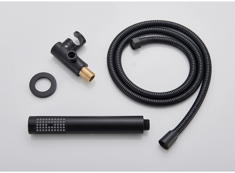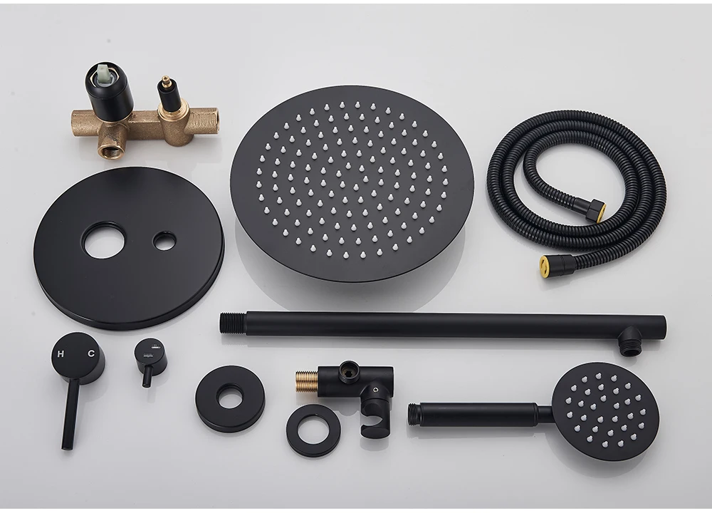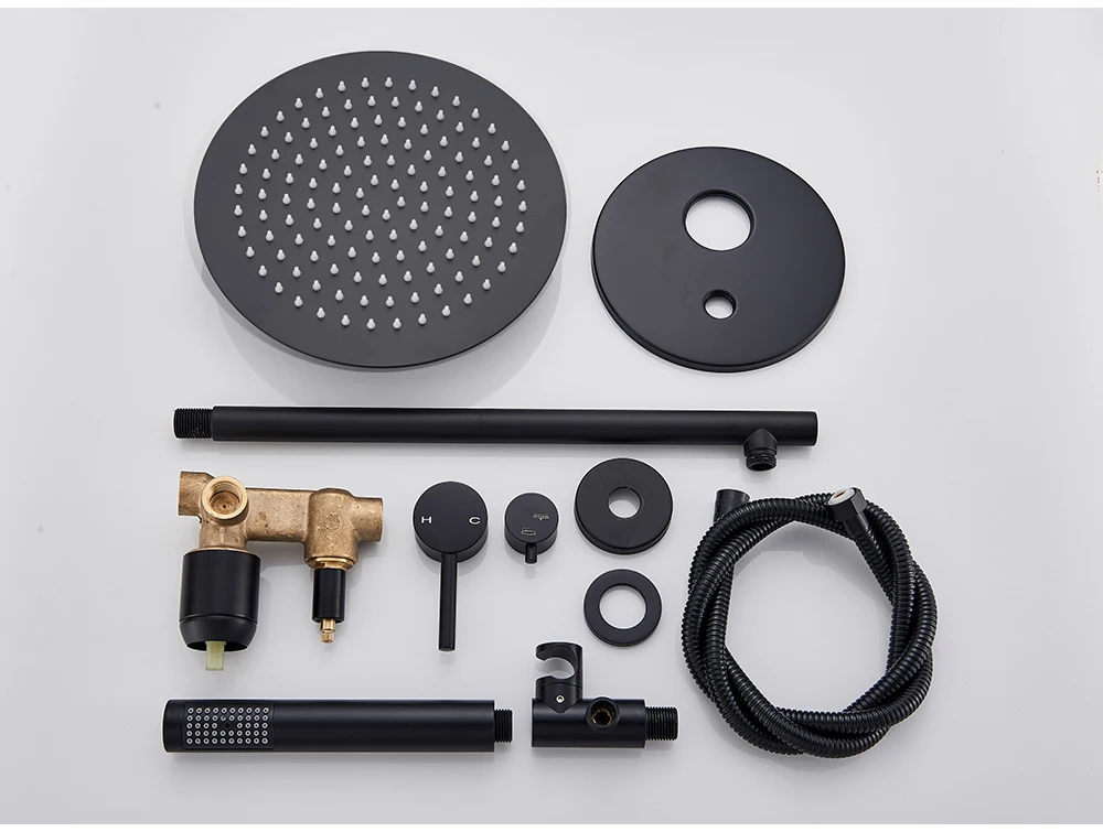 Отделка: матовый черныйТип: смеситель для душа для ванной комнатыДушевая головка: 8 дюймов -- 20 см, 10 дюймов -- 25 см,12 дюймов -- 30 см, 16 дюймов -- 40 смМатериал душевой головки: ультратонкая нержавеющая стальТип А ручной душ: АБС-пластик класса АТип B ручной душ: нержавеющая стальШланг для душа: 150 смКлапан смесителя для душа: латунный клапан смесителя