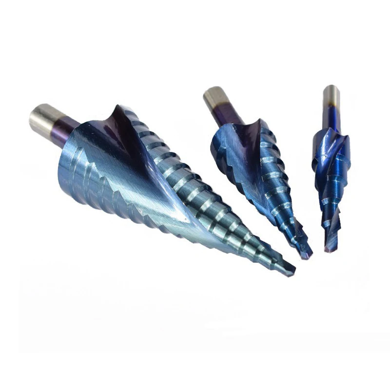 Ступенчатое сверло из быстрорежущей стали с нано-синим покрытием, 3 шт.