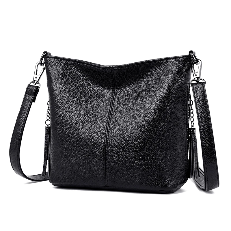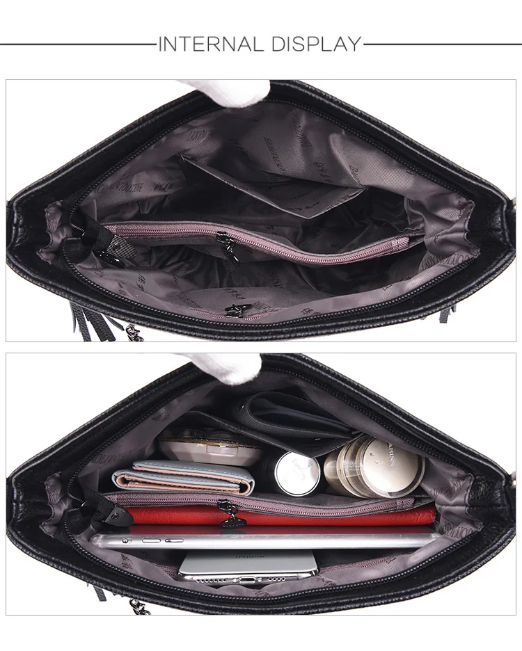 Сумка через плечо женская, кожаная, с кисточками, 2021