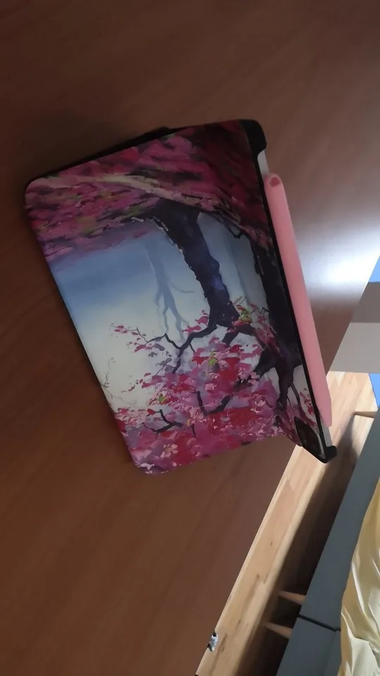 Нереальной красоты чехол. Выполнен качественно, материал не царапается, достаточно плотный и отлично защищает корпус планшета. Подставка (чёрная часть) работает на отлично - держит планшет и не соскальзывает. Однозначно рекомендую!