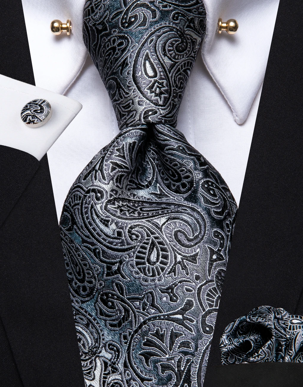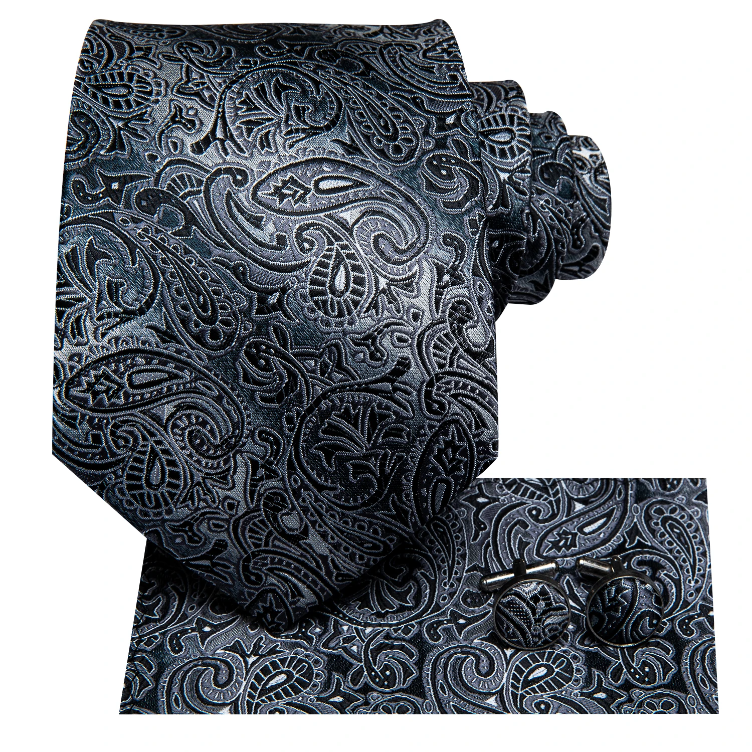 Серый полосатый Шелковый Свадебный Галстук Пейсли для мужчин Handky...