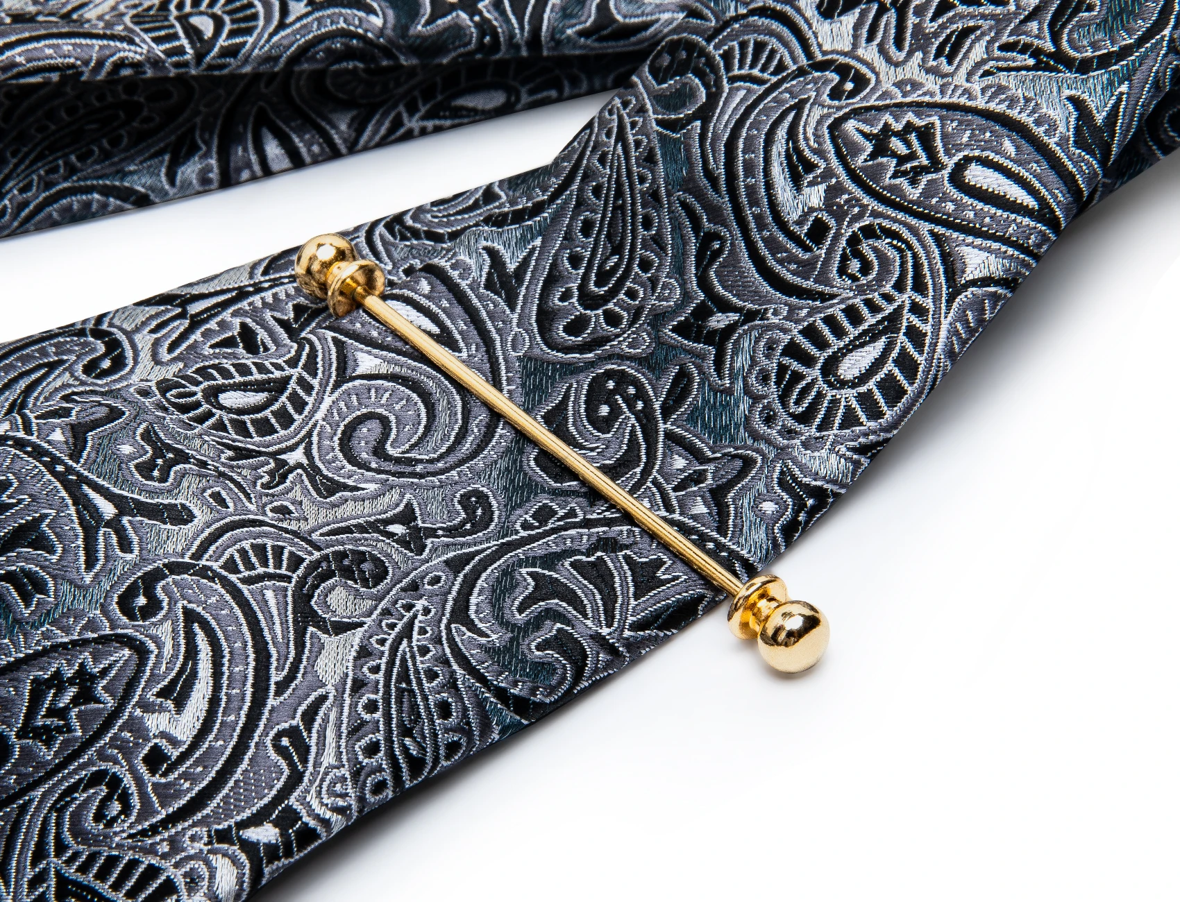Галстук Hi-Tie роскошный галстук 8,5 см черный мужской галстук Золотая булавка на воротник Пейсли ручные запонки набор для мужчин роскошная свадьба Высокое качество