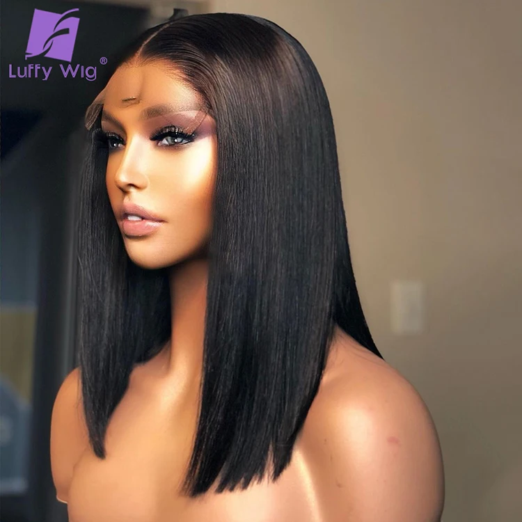 Парик Luffywig с прямыми короткими волосами Боб, парики из искусственных волос 5x5 на шелковой основе, парик без клея, парики из человеческих волос с неповрежденной кружевной передней частью, предварительно выщипанные