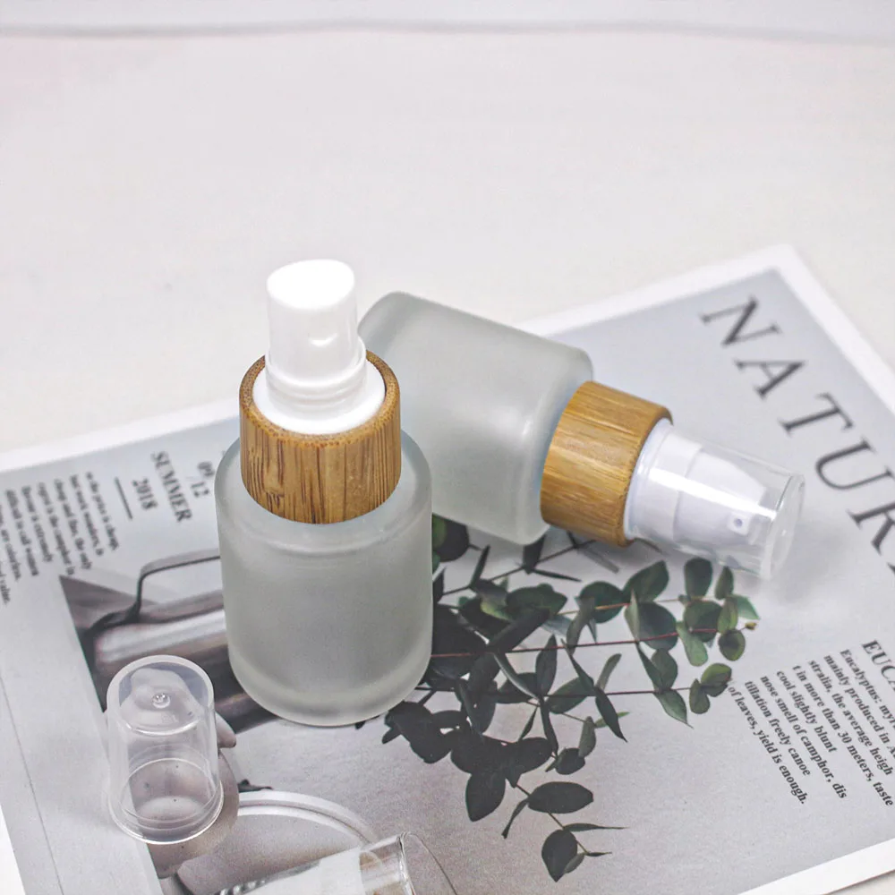 20 мл Косметическая матовая стеклянная банка для крема, распылитель для лосьона, бутылка с экологичной бамбуковой крышкой, деревянная крышка, упаковка для ухода за кожей