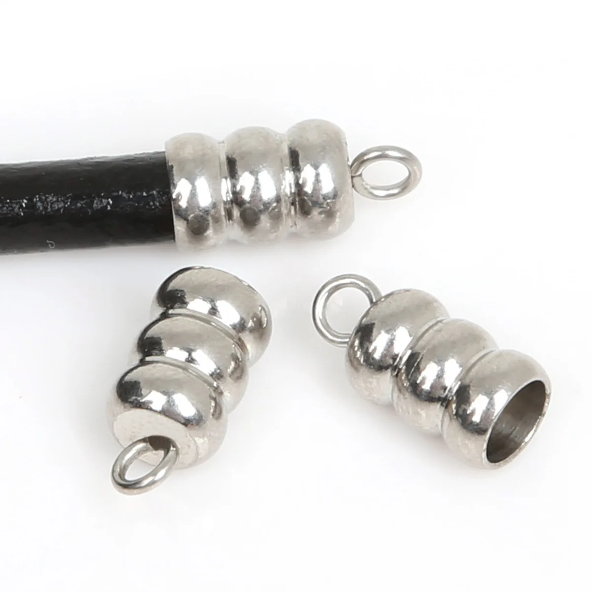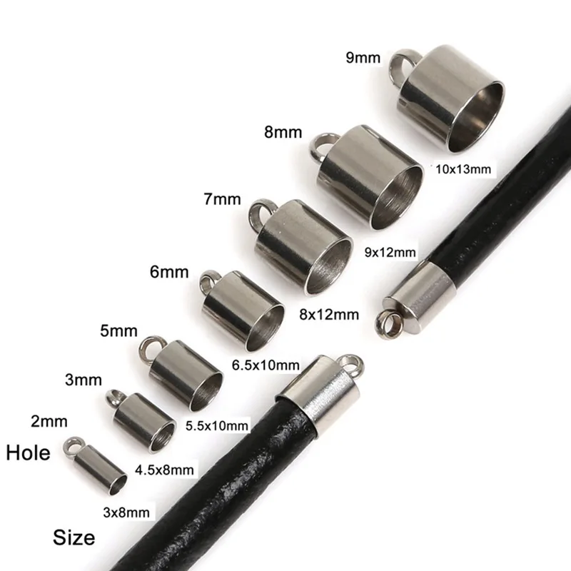 10 шт сделанных из нержавеющей стали металлические Обжимные бусины Подвески на кожаном шнурке, заканчивается шапки разъемы для плетения браслетов расходные материалы