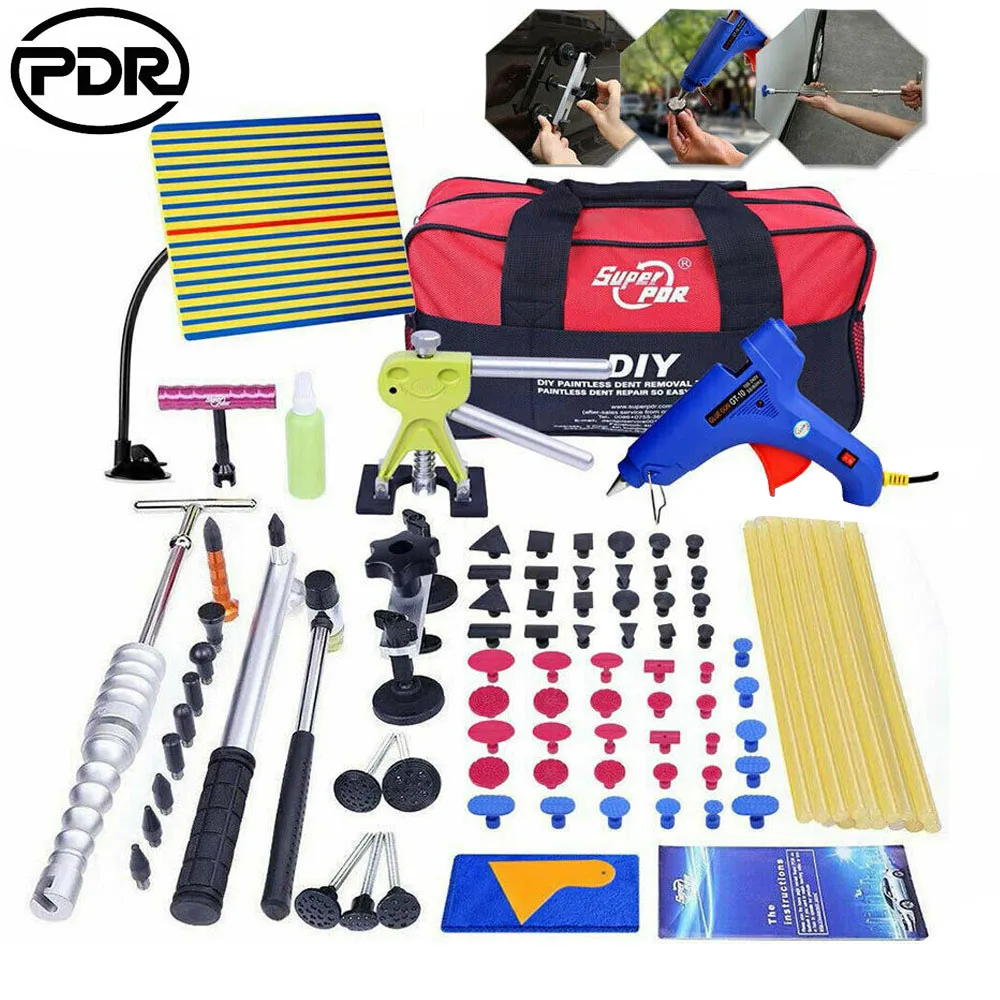 Набор инструментов для ремонта вмятин без покраски PDR, подъемник для вмятин, клеевой пистолет, устройство для удаления вмятин, клеевые вкладки, линия, скользящий молоток, присоска, с сумкой для инструментов
