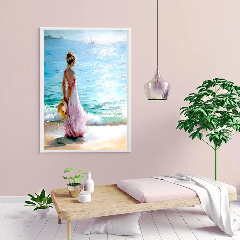 Девушка у моря DIY Рисование на холсте по номерам для детей и взрос...