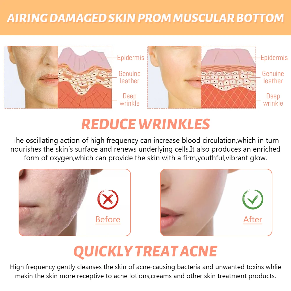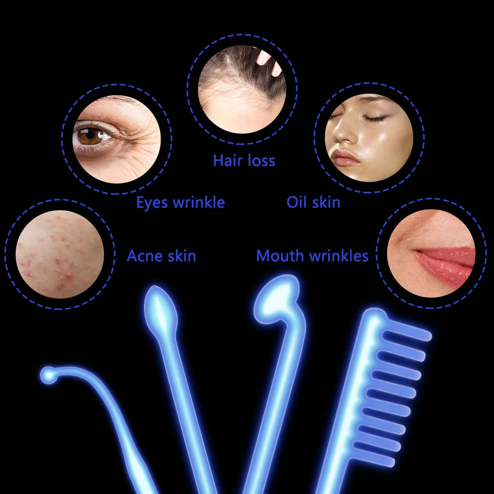 Аппарат для электротерапии и ухода за кожей, 4 в 1, Высокочастотный электрод, против морщин, точечный очиститель лица