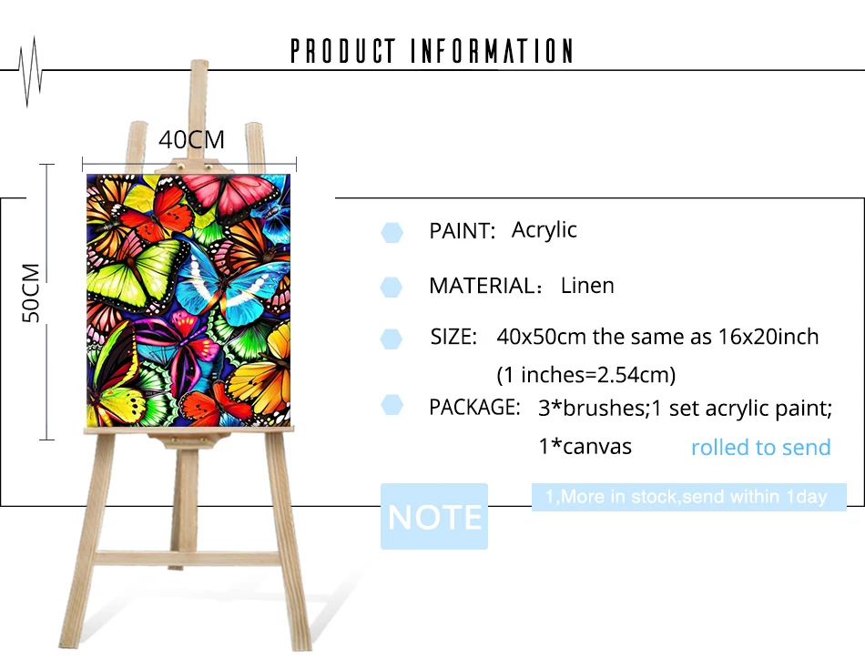 Картина по номерам на холсте, бабочки, животные, для домашнего декора