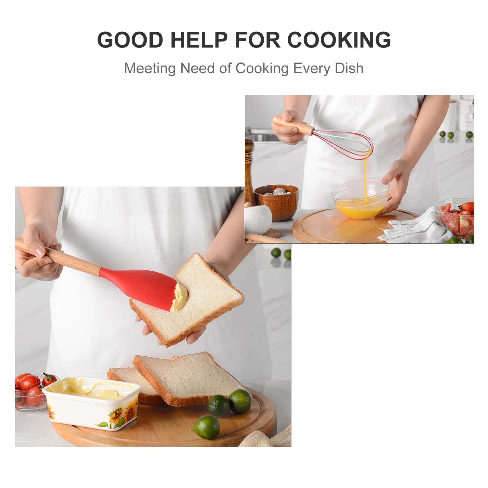 Набор силиконовых кухонных принадлежностей, шпатель с деревянной ручкой, ложка-кисточка для супа, ковша, пасты, дуршлаг, антипригарная посуда, кухонные инструменты для приготовления пищи