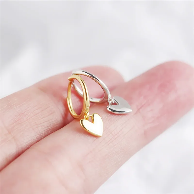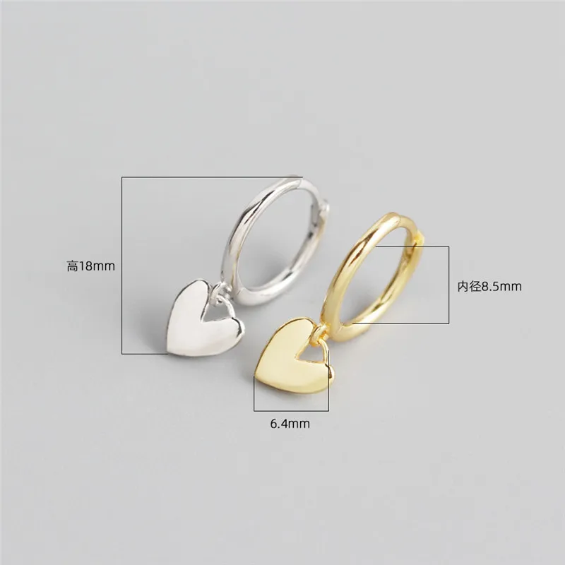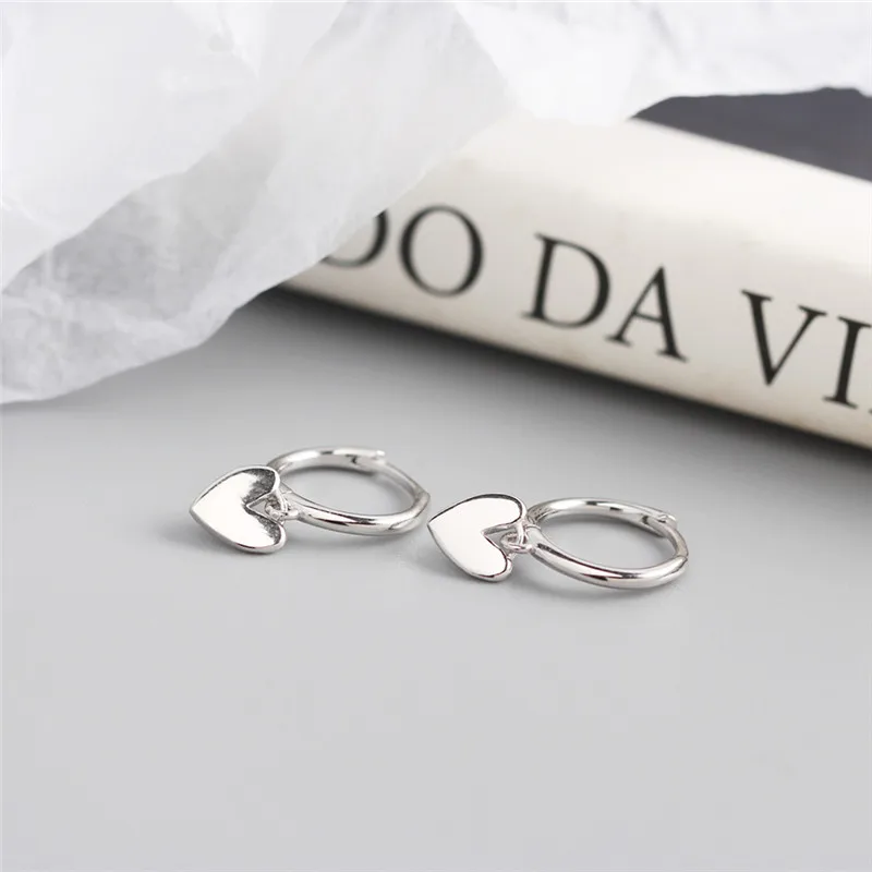 Женские серьги-подвески в форме сердца из серебра 100% пробы