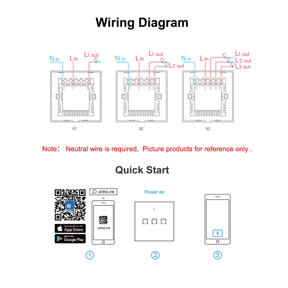 Умный настенный выключатель SONOFF T0EU3C-TX 3 Gang с поддержкой Wi-Fi и таймером сенсорного управления