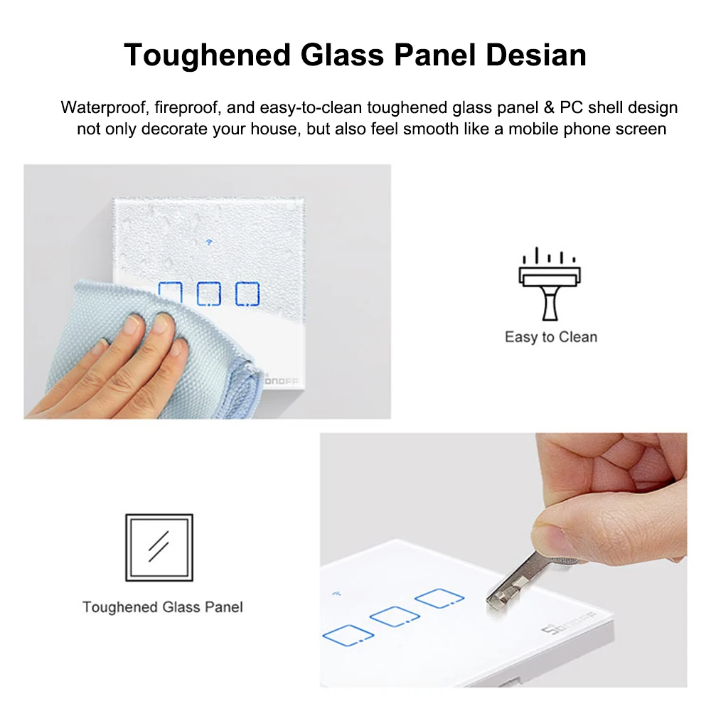 SONOFF T0EU3C-TX 3 банды умный WiFi настенный светильник переключатель приложение/сенсорный таймер управления ЕС панель домашней автоматизации совместима с Google Home/Nest & Alexa