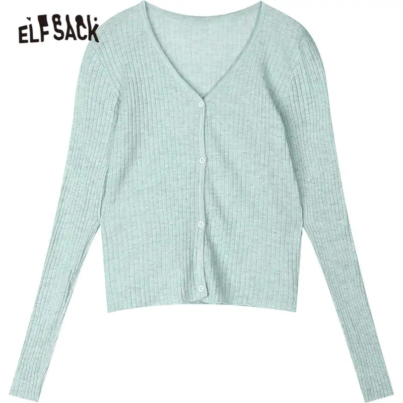 Женский однобортный Кардиган ELFSACK, однотонный вязаный Повседневный Кардиган в Корейском стиле на осень и зиму 2020