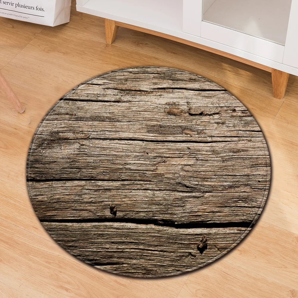 Круглый ковер, нескользящий коврик для гостиной, спальни, дома, компьютерного кресла, с текстурой древесины