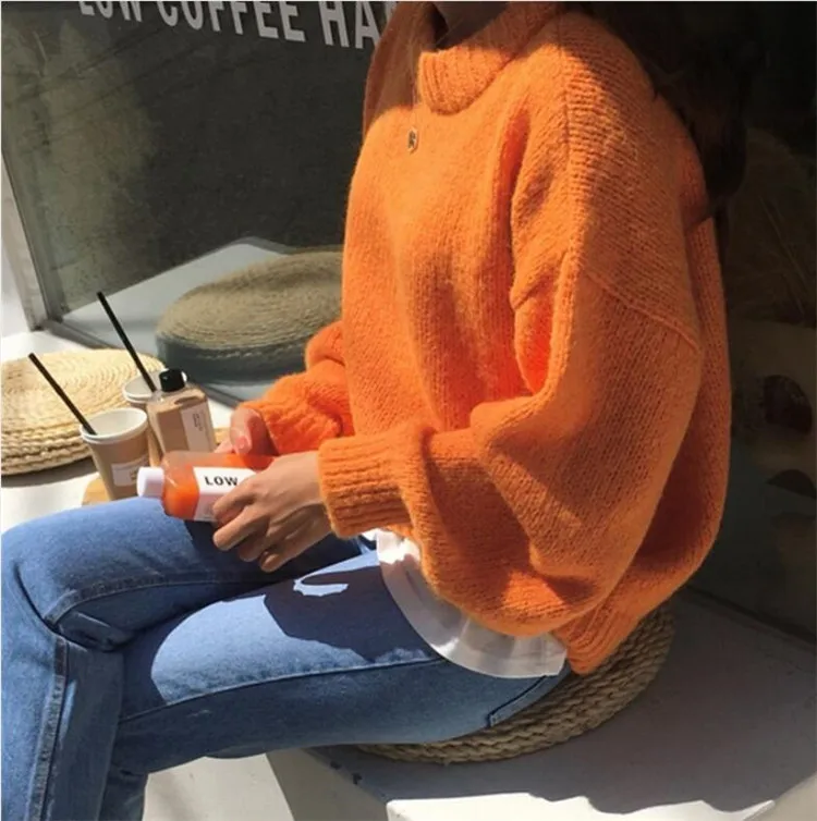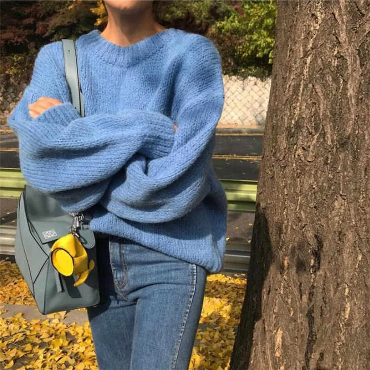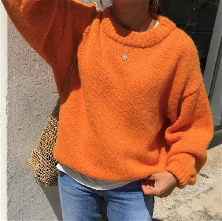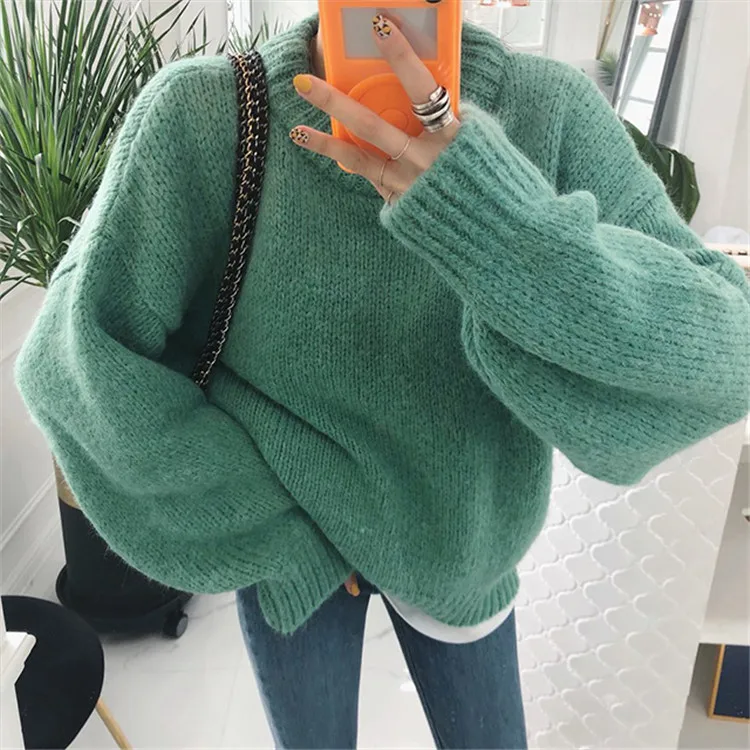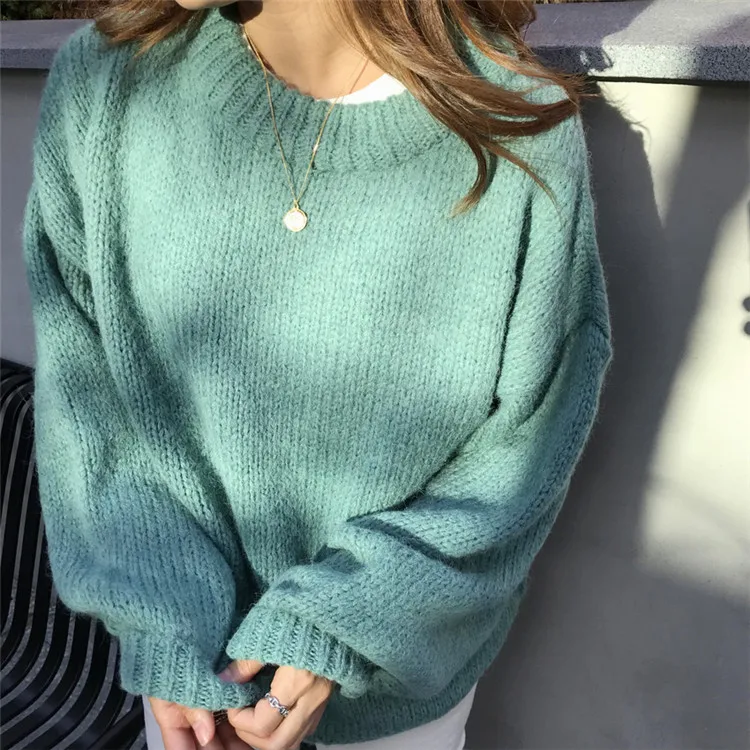 Зимние Модные женские универсальные пуловеры 2020, однотонная вязаная теплая одежда большого размера, повседневные женские свитера с круглым вырезом T07523R