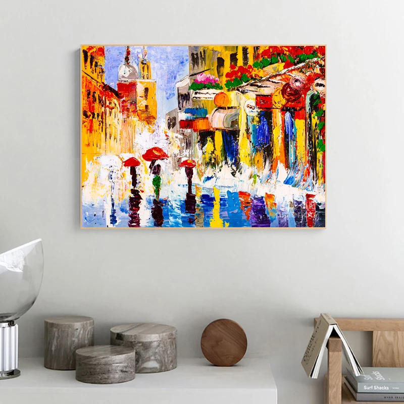 Рельефные картины, абстрактные картины, красочные холсты с изображением дождливой дороги, Настенные Декоративные плакаты и принты для гостиной