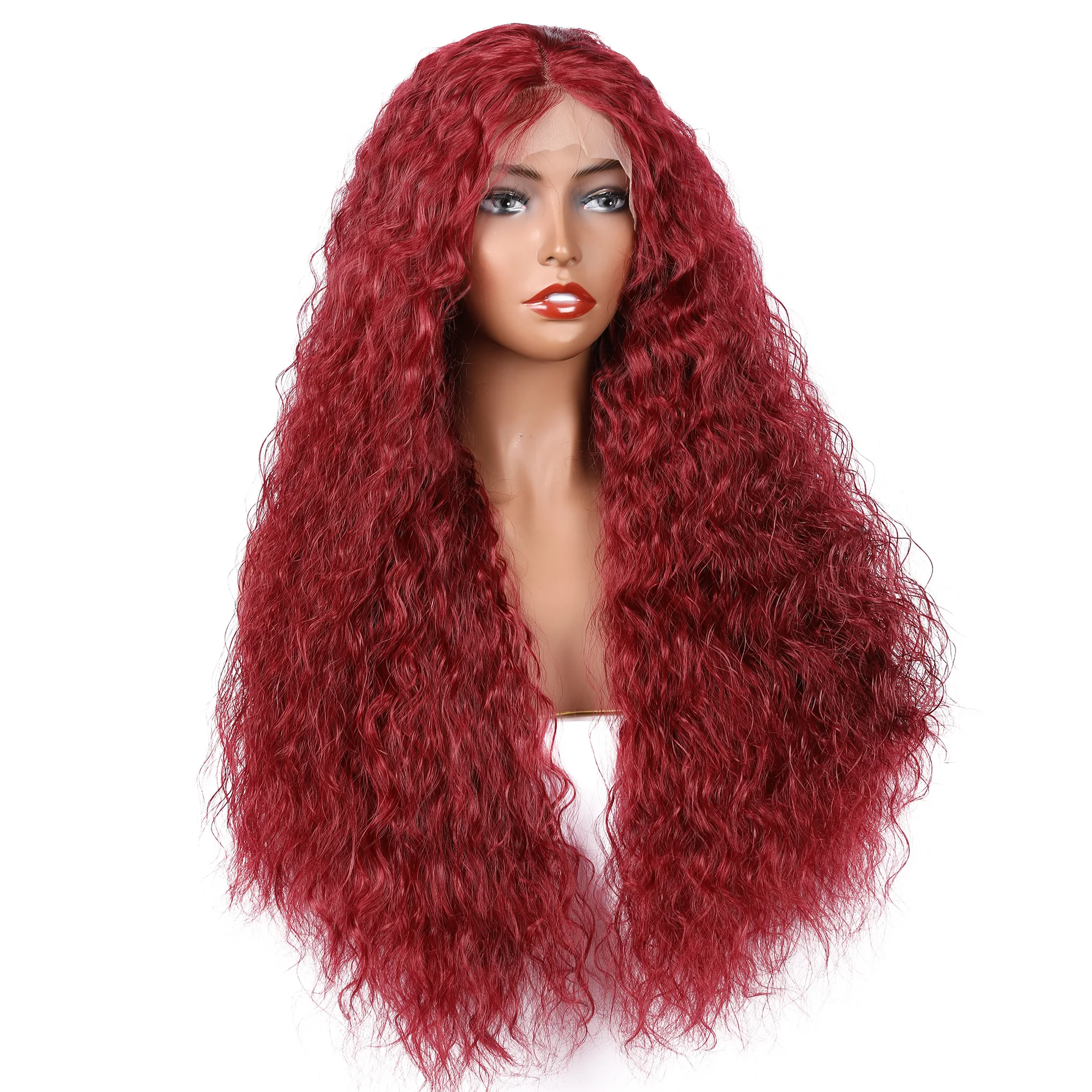 Винно-красный афро кудрявый синтетический кружевной передний парик для чернокожих женщин Косплей безклеевый термостойкий ежедневный парик с детскими волосами