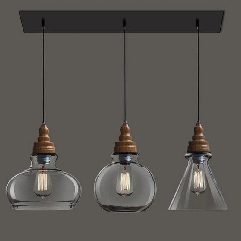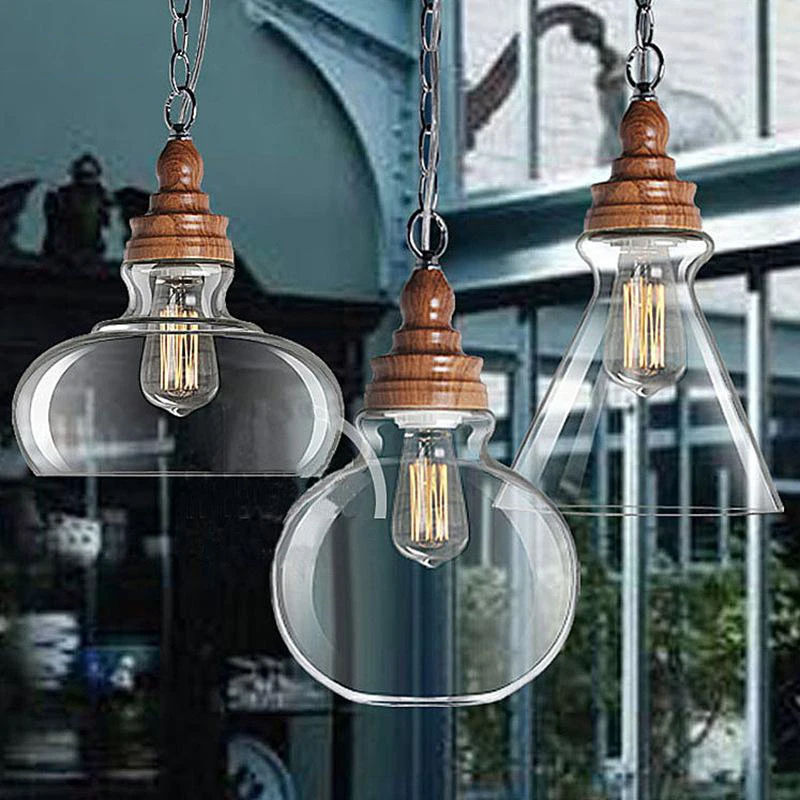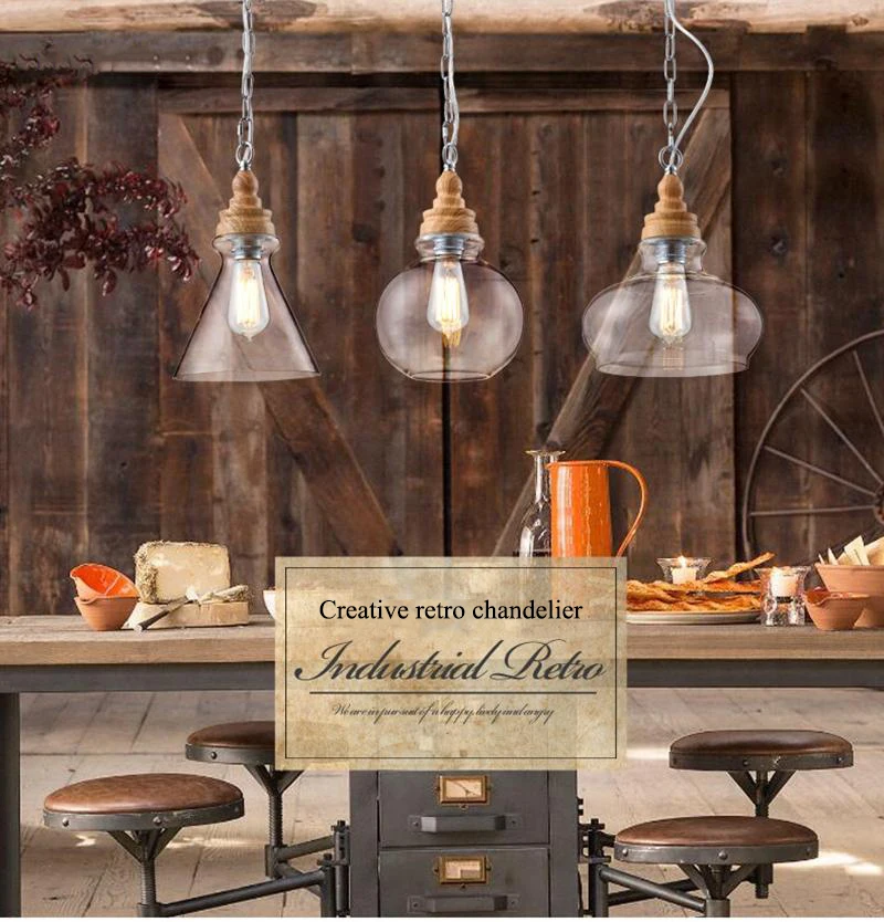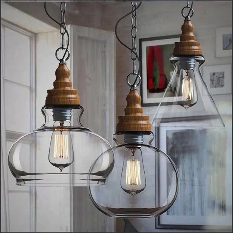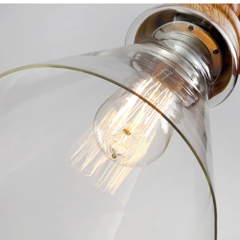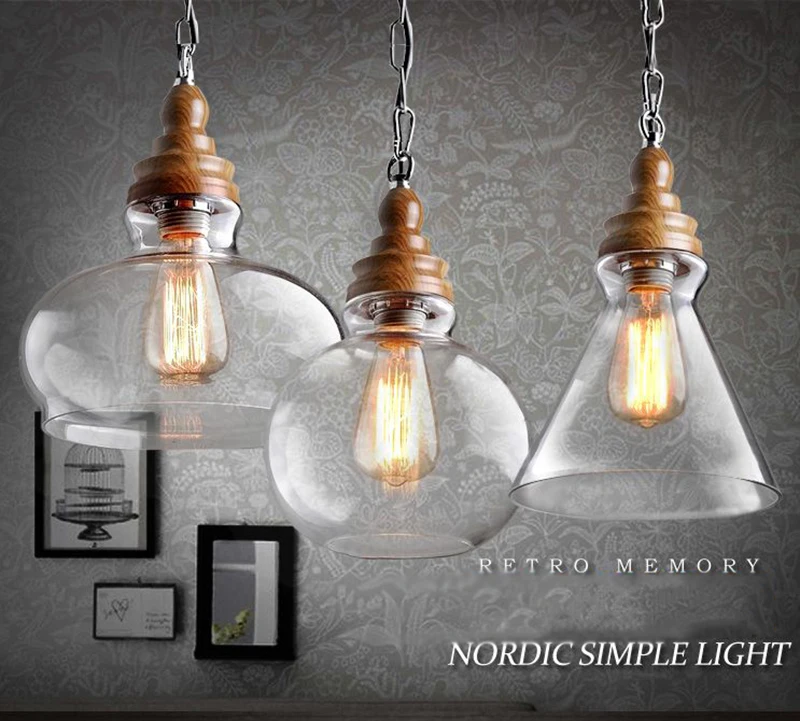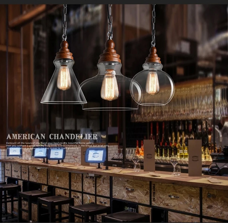 Американский кантри дерево зерна подвесные светильники Ретро одна голова мини, из прозрачного стекла светодиодное освещение для приспособления Кухня Бар отель магазин