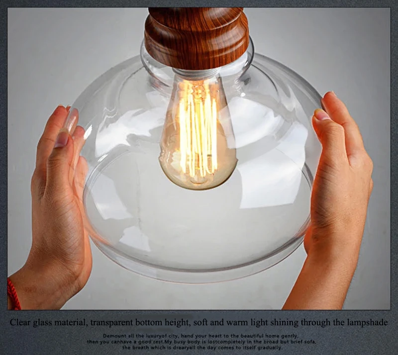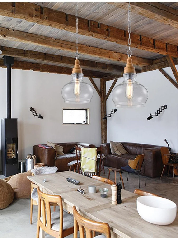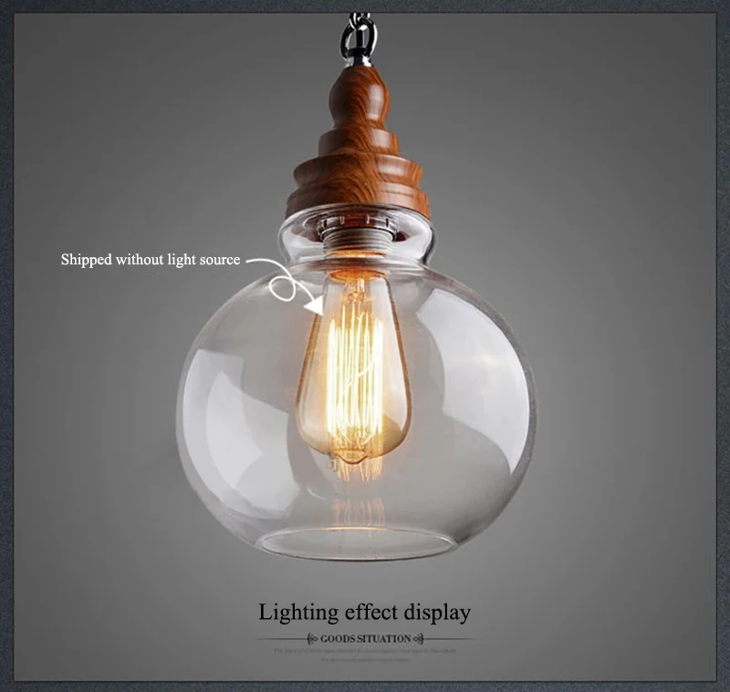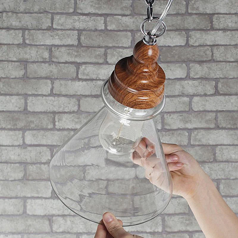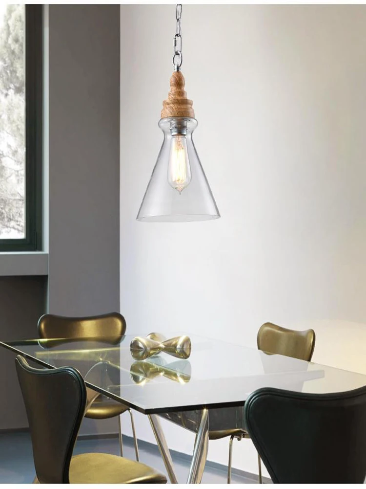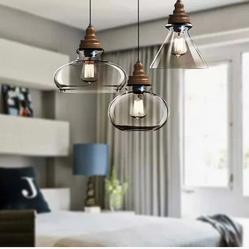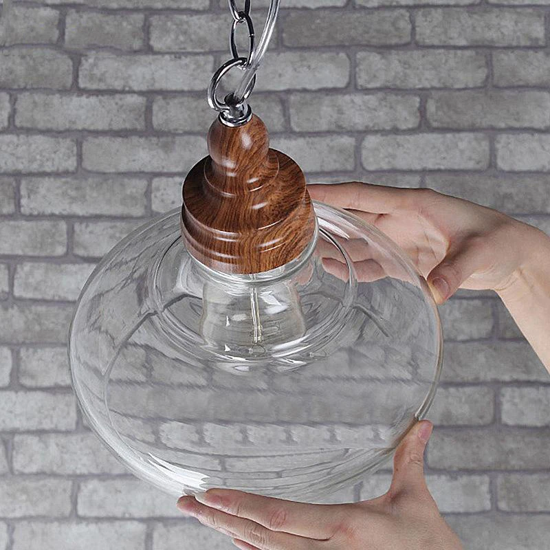 Американский кантри дерево зерна подвесные светильники Ретро одна голова мини, из прозрачного стекла светодиодное освещение для приспособления Кухня Бар отель магазин