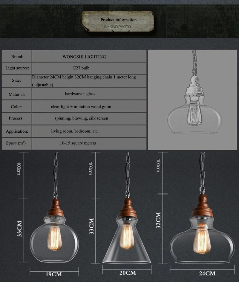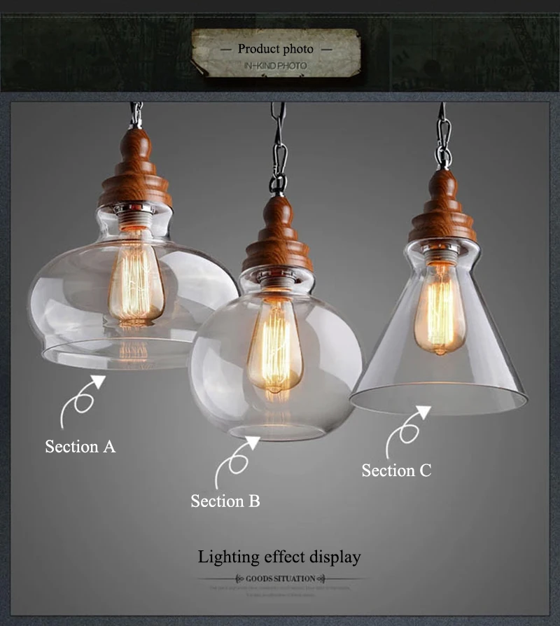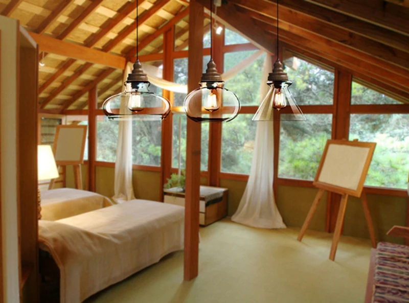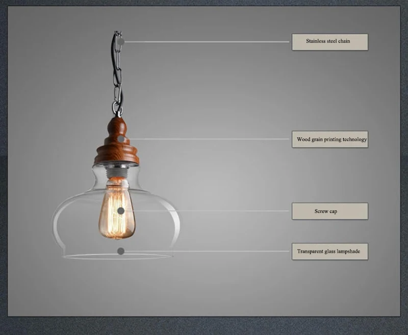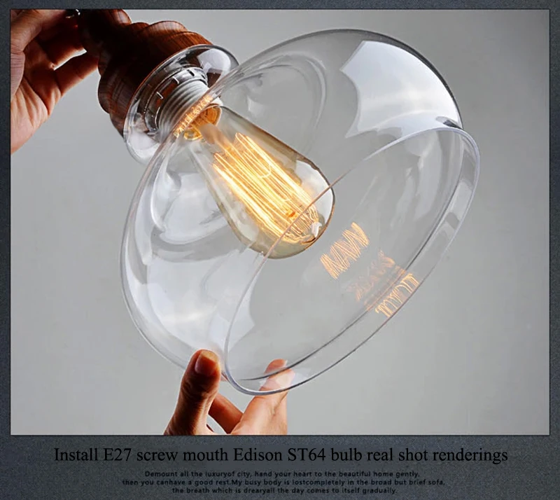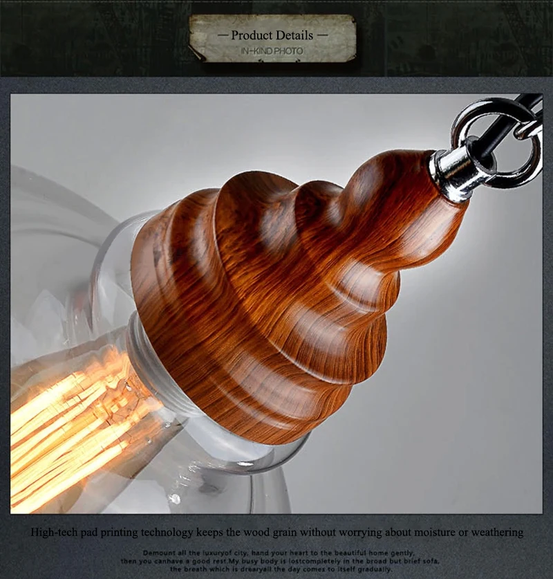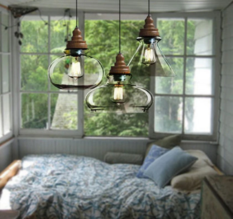 Американский кантри дерево зерна подвесные светильники Ретро одна голова мини, из прозрачного стекла светодиодное освещение для приспособления Кухня Бар отель магазин