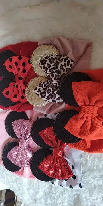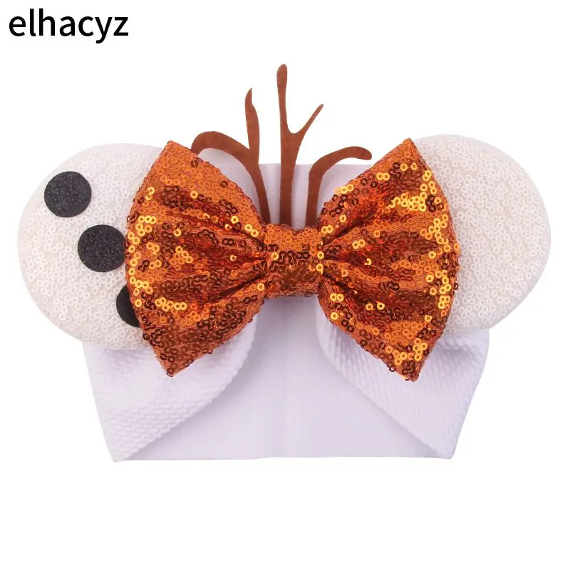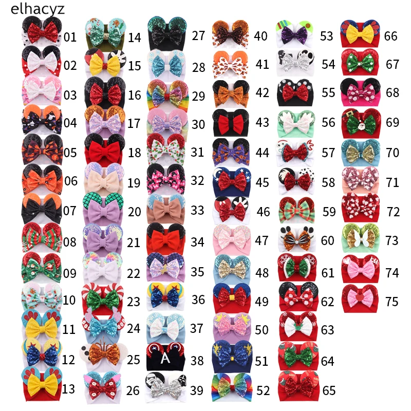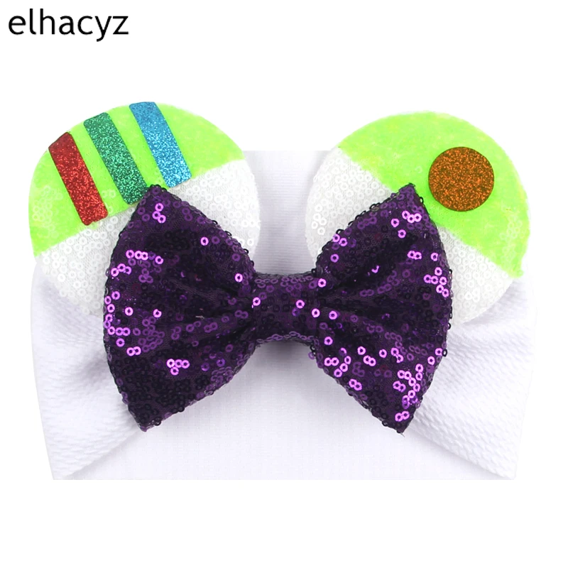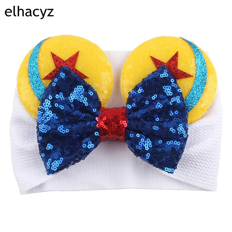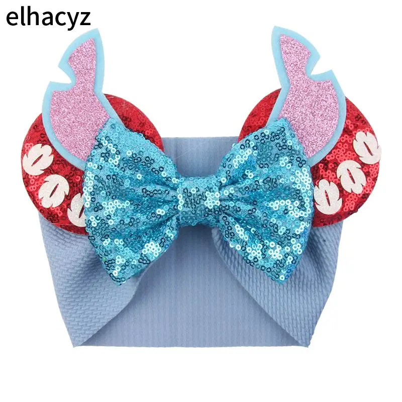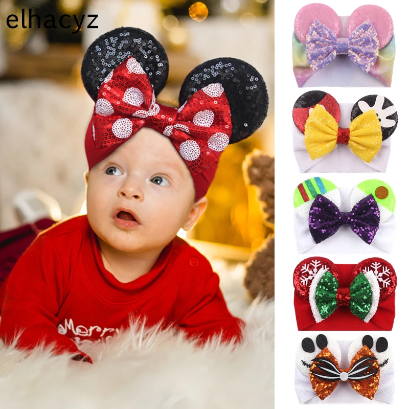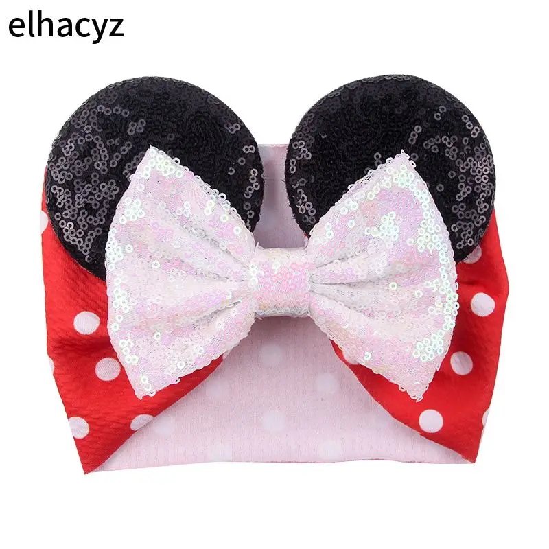 Банты для волос с блестками 5 дюймов, Классический тюрбан с ушками мыши, повязка на голову для девочек, детские блестящие аксессуары для волос, детский головной убор