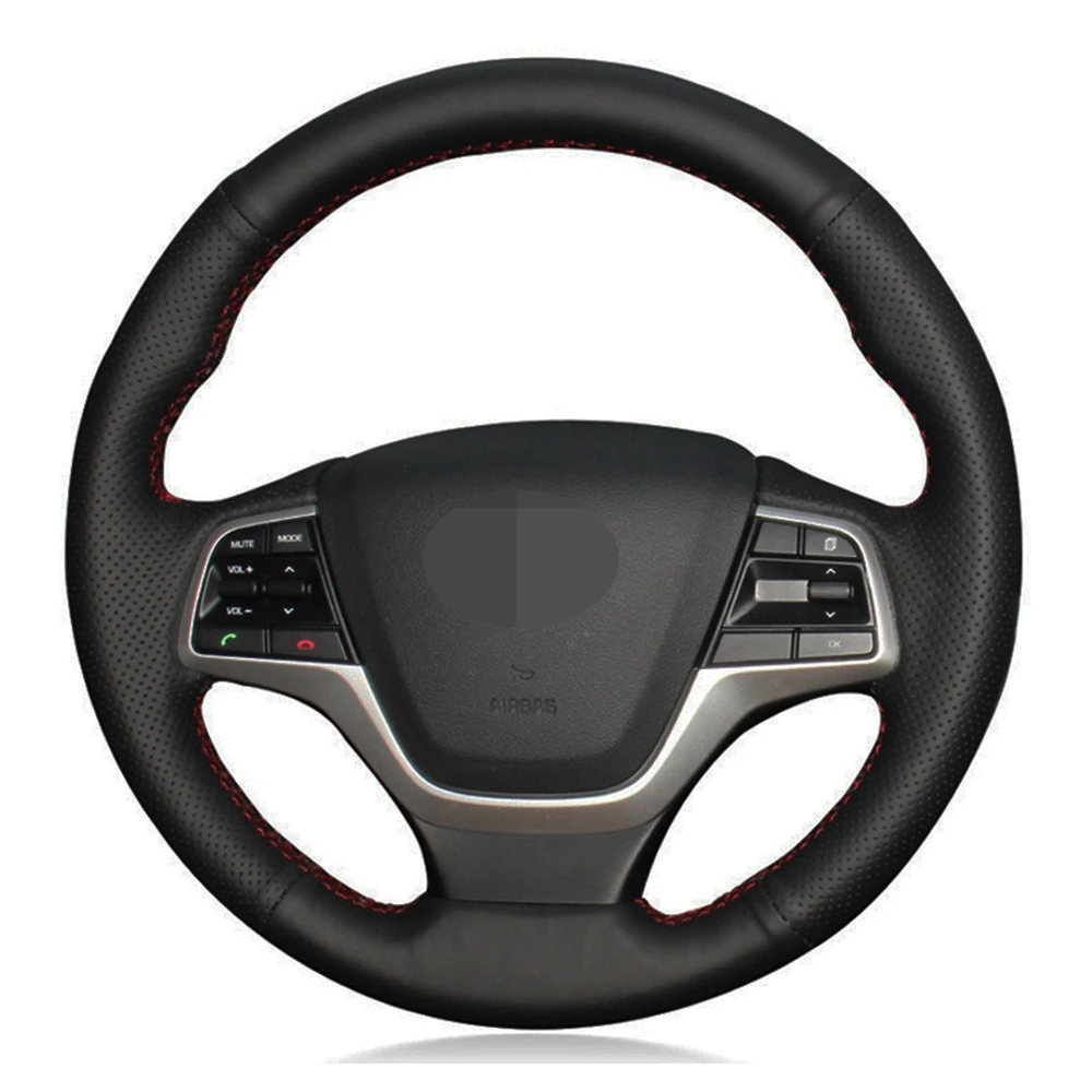 Чехол рулевого колеса автомобиля DIY Ручная работа черная натуральная кожа для Hyundai Elantra 4 2016-2019 Solaris 2017-2019 Accent