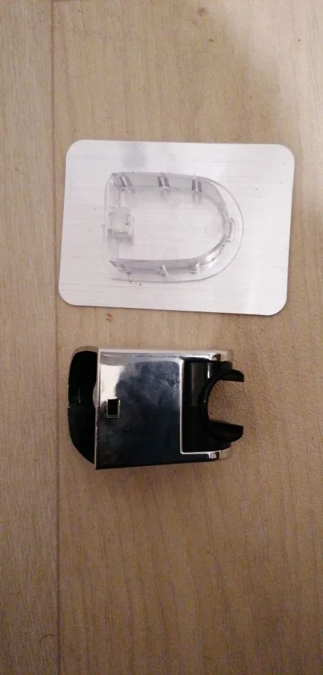 Он очень хорошо прилипает. У него есть две части, которые идут к стене и серебру. Очевидно, пластик, но выглядит отлично.