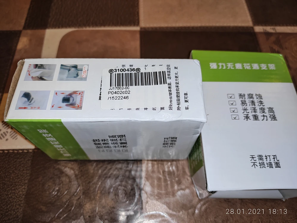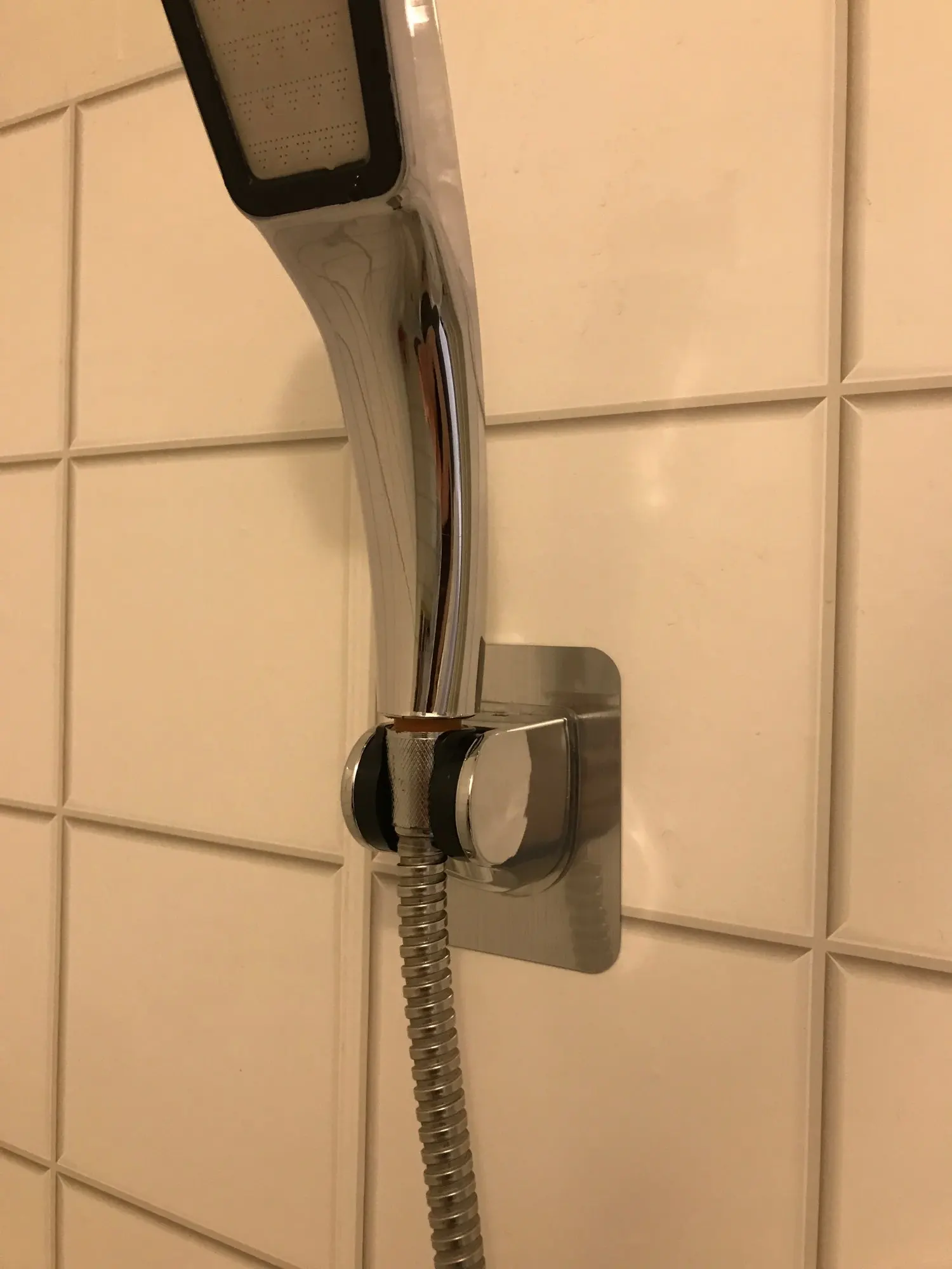 Пришёл через 2 недели, хорошо упакован. Повесил на стену. К лейке grohe подошёл нормально. Прикрепился к стене крепко. Давно думал приобрести такую штуку, но сверлить стену не хотелось...