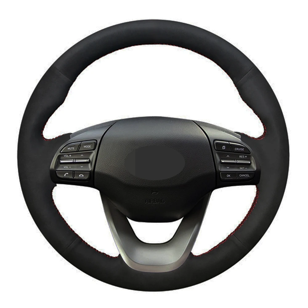 Чехол рулевого колеса автомобиля DIY ручной работы черного цвета из натуральной кожи и замши, для Hyundai Kona 2017 2018 2019