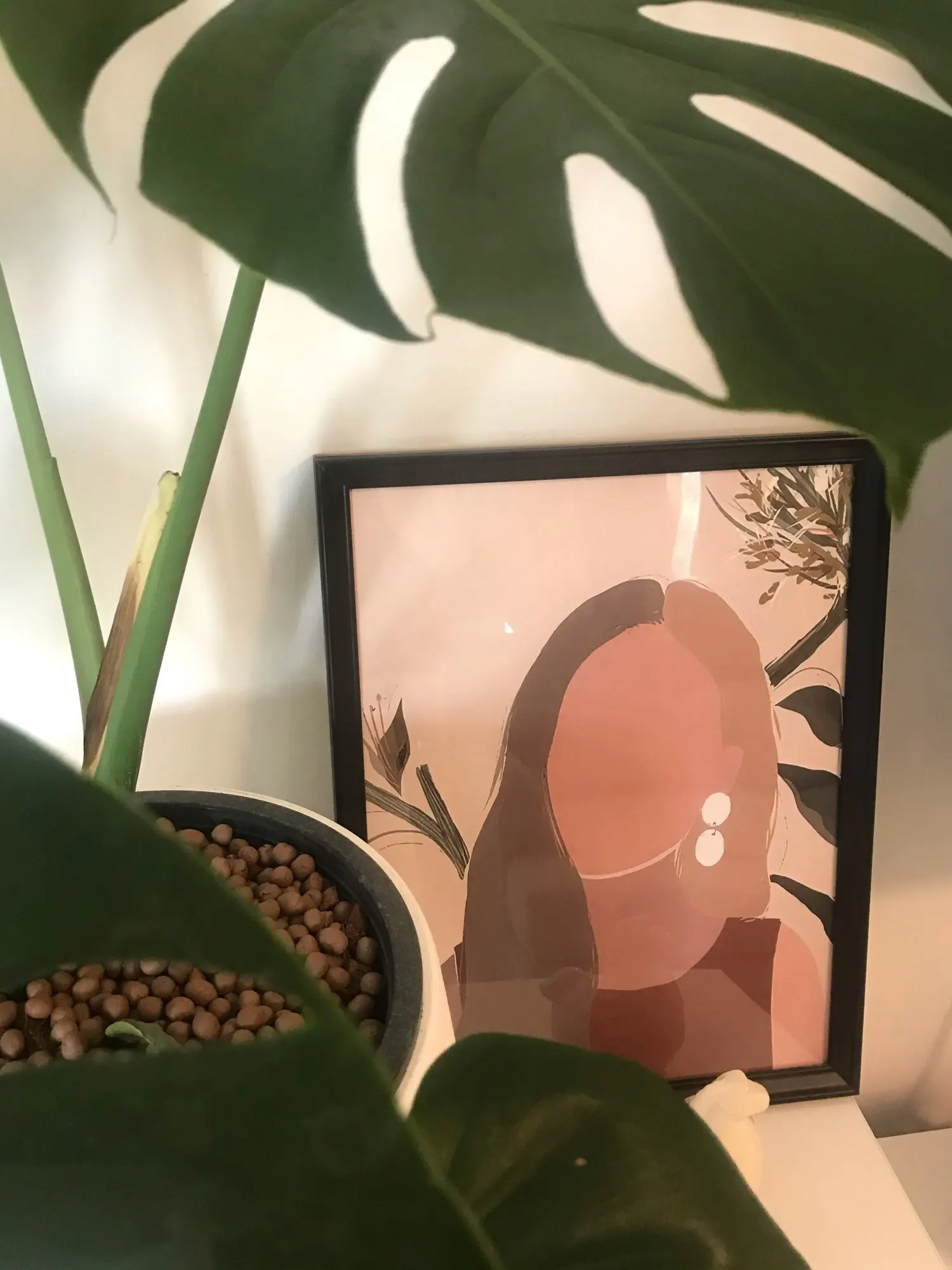 Модная девушка растения листья иллюстрация стены Искусство Холст Ка...