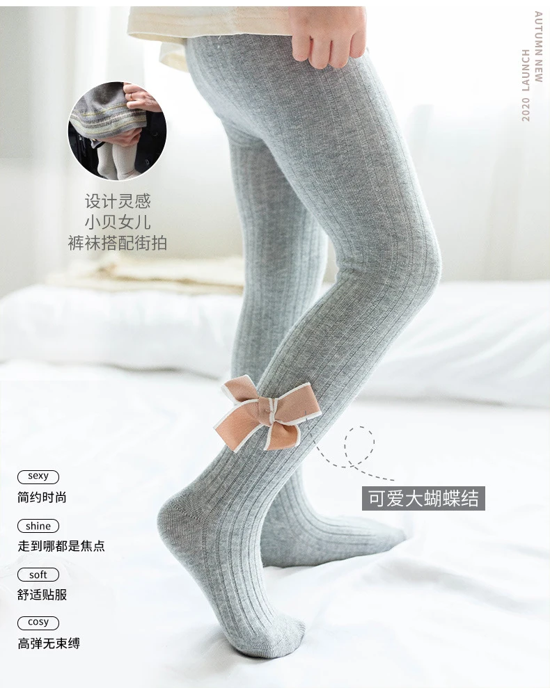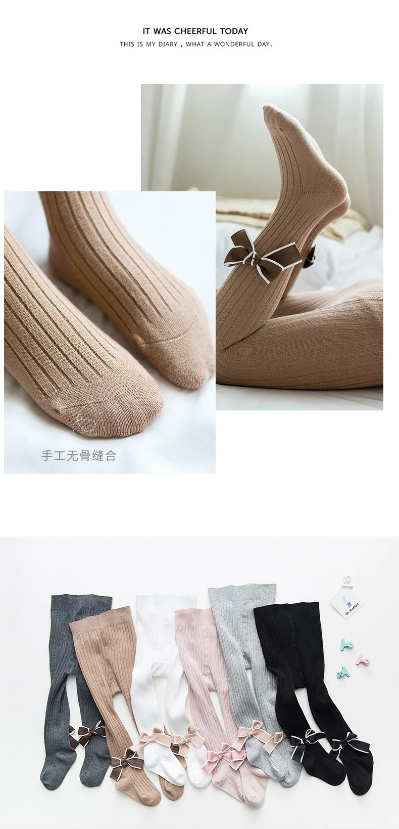 Новые осенние колготки для девочек, колготки для малышей, детские ребристые колготки, аксессуары с бантом, детские колготки, удобные мягкие колготки для подростков
