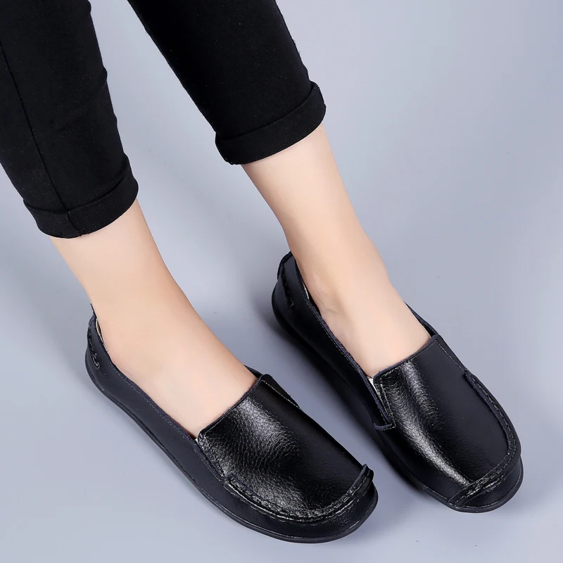 Туфли женские из натуральной кожи, мягкая повседневная обувь на пло...