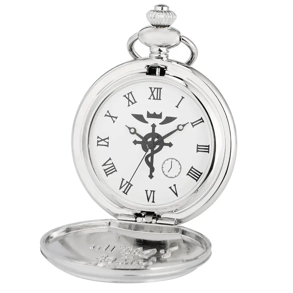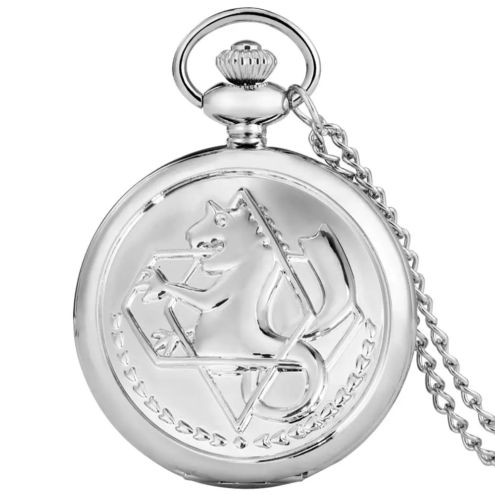 Цельнометаллические серебряные часы-Алхимик с подвеской Мужские кварцевые карманные часы с японским аниме ожерельем детский подарок ретро ожерелье часы-брелок