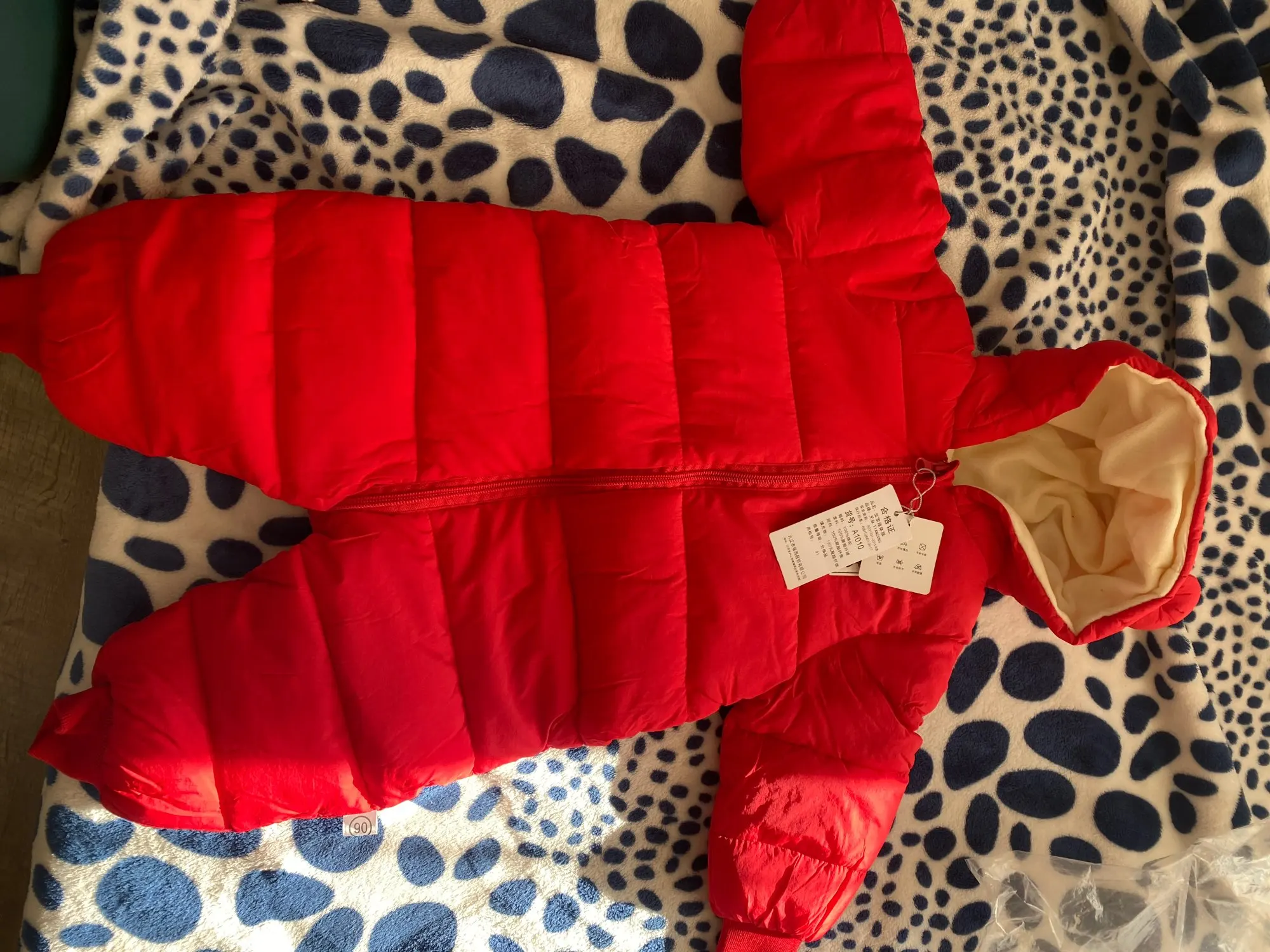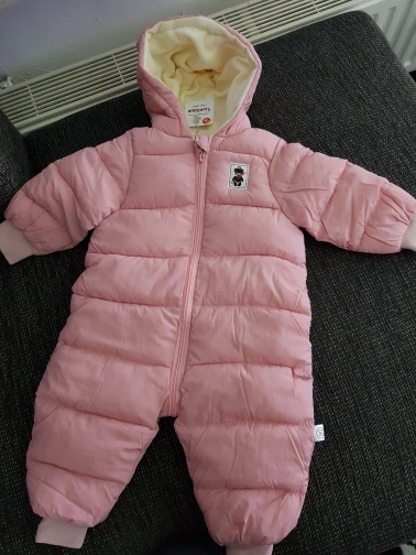 Продавец отправил комбез только на 6 день, до МСК посылка шла 3 недели. Качество так себе, на троечку, нитки торчат, сшит не аккуратно. На очень тёплую зиму или скорее весну осень даже. Размер 9 мес. нам подошёл на 6 мес. рост 70 см. Думаю ещё весной поносим, небольшой запасик есть, на комбезе маркировка 80. Первый раз заказала одежду на али, все же ширпотреп, больше не буду.