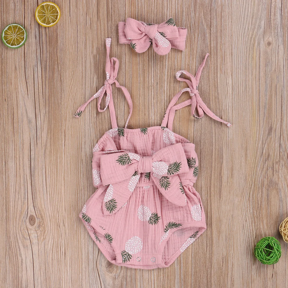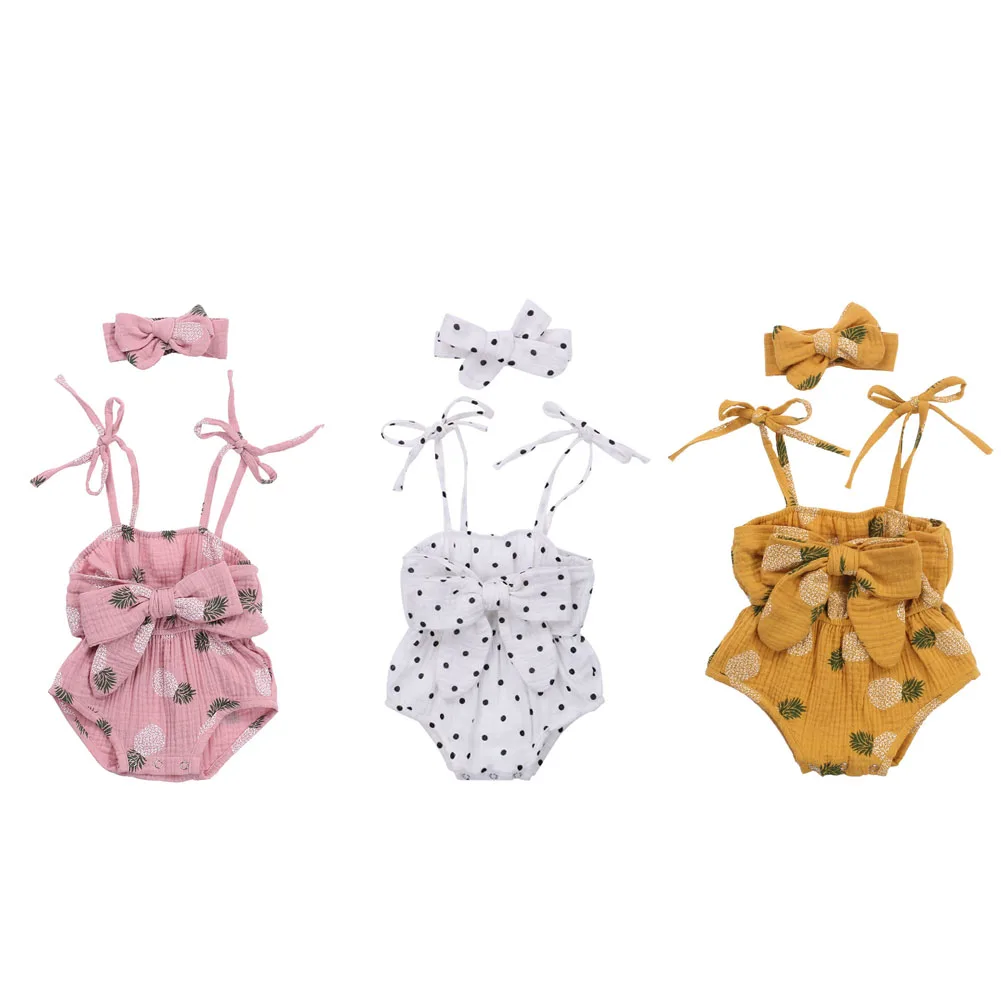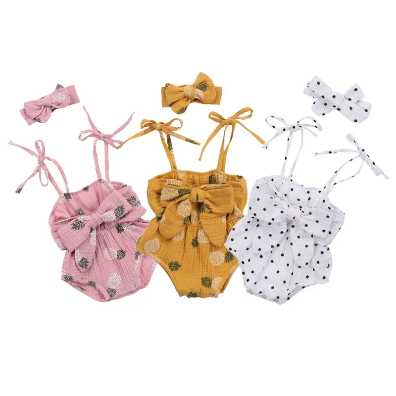 Комбинезон с бантом и треугольным поясом для новорожденных девочек