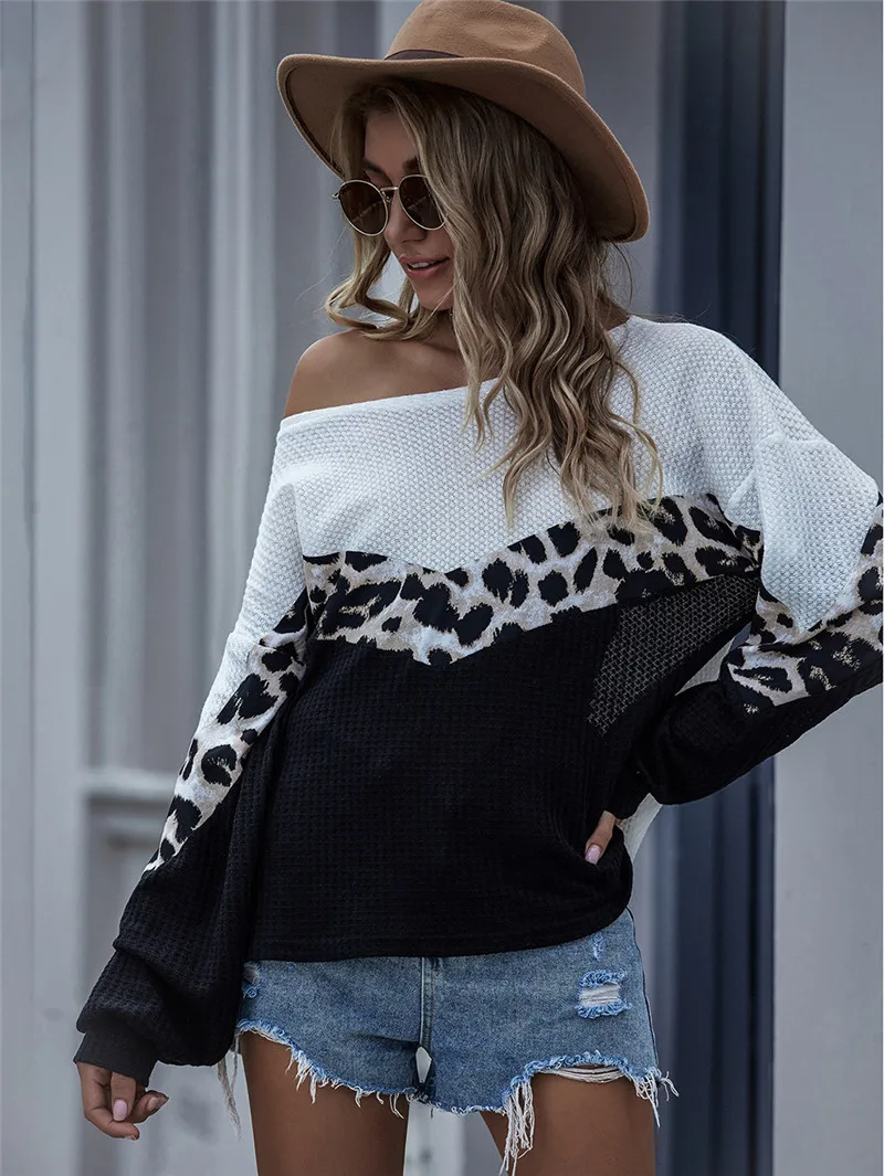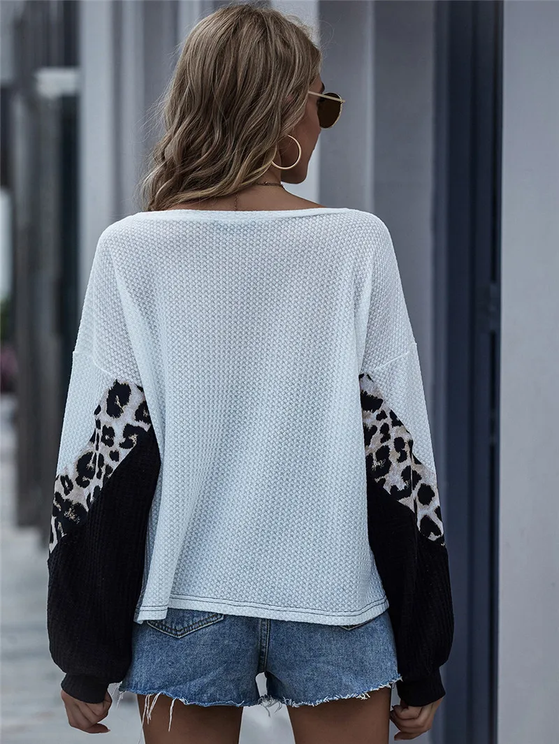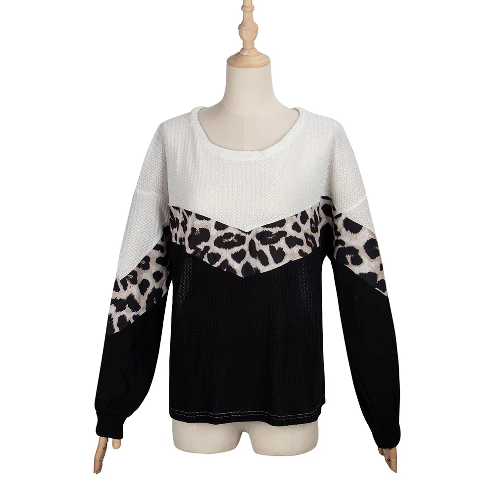 Свитер женский трикотажный, с леопардовым принтом и длинным рукавом