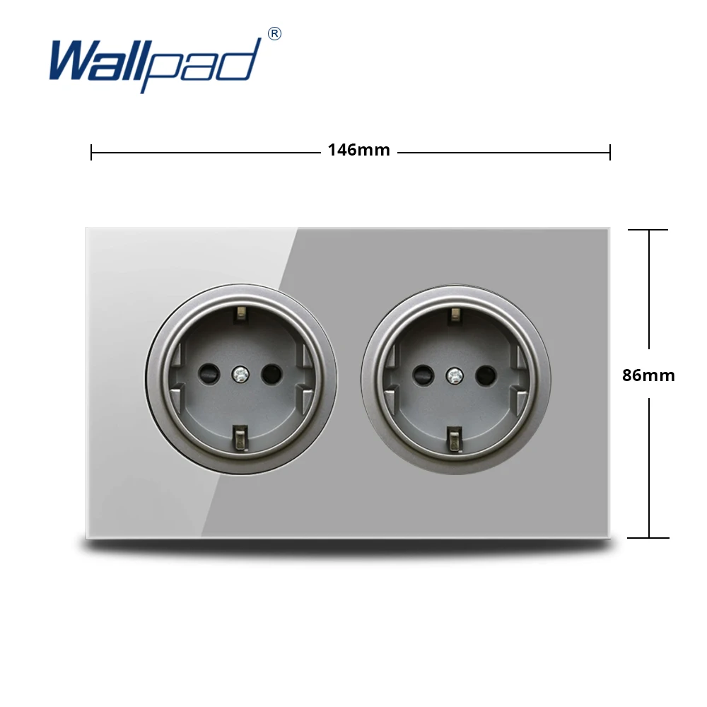 Wallpad двойной настенная розетка стандарта ЕС электрическая розетка Серый Кристалл Закаленное стекло панель 3x6 рама 146 мм
